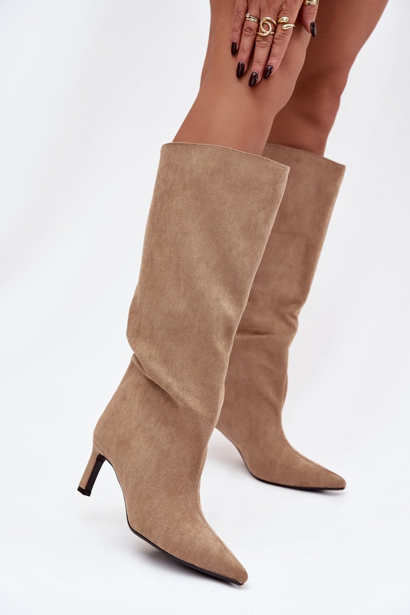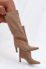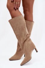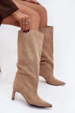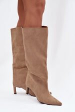 Sieviešu potītes zābaki no mīksta ekoloģiskā zamšāda ir izcila izvēle sievietēm, kas novērtē eleganci un modernu izskatu. Modelis izceļas ar slaido siluetu, kas perfekti izceļ kājas un piešķir figūrai viegluma sajūtu. Smaile un augsts papēdis piešķir sievišķību un eleganci. Zābaki ir bez auklām, nodrošinot ērtu uzvilkšanu, bet priekšējā vīle ir smalks dekoratīvs akcents, kas izceļ to eleganto līniju. Pateicoties uzmanībai pret detaļām, tie būs perfekts papildinājums gan vakarkleitām, gan ikdienas apģērbiem ar pieguļošām biksēm. Izvēloties izmēru, lūdzu, izmantojiet izmēru tabulu.