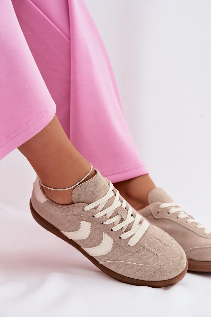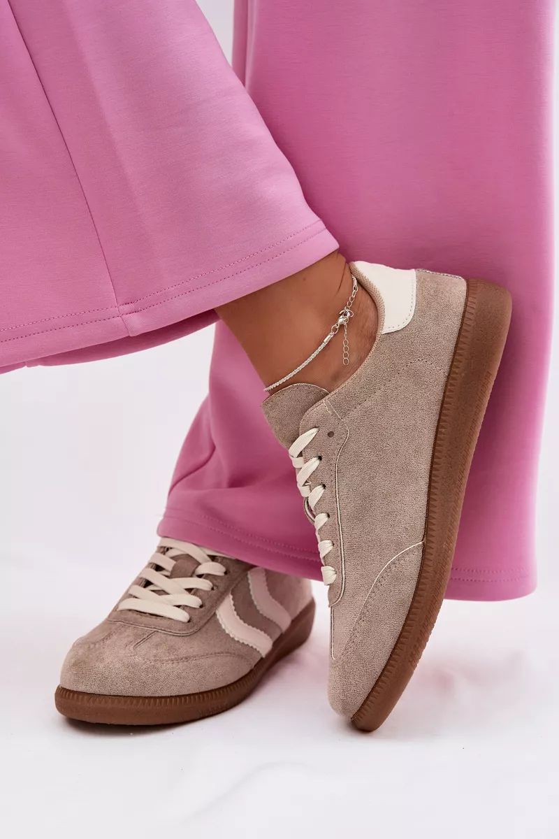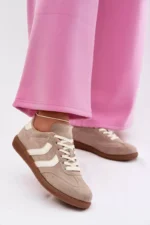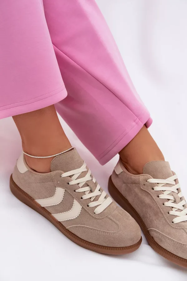 Sieviešu sporta kurpes no videi draudzīga zamšāda ir stilīga izvēle ikdienas tērpiem. Zems siluets piešķir tām daudzpusīgu raksturu, padarot tās ideālas daudzām dažādām kombinācijām. Klasiskais auklas dizains nodrošina labu piegulumu, bet dekoratīvās svītras sānos uzsver modeļa modernu izskatu. Šie ērta apavi apvieno praktiskumu ar aktuālajām tendencēm un ir piemēroti gan pastaigām, gan aktīvām dienām pilsētā. Izvēloties izmēru, skatieties izmēru tabulu.