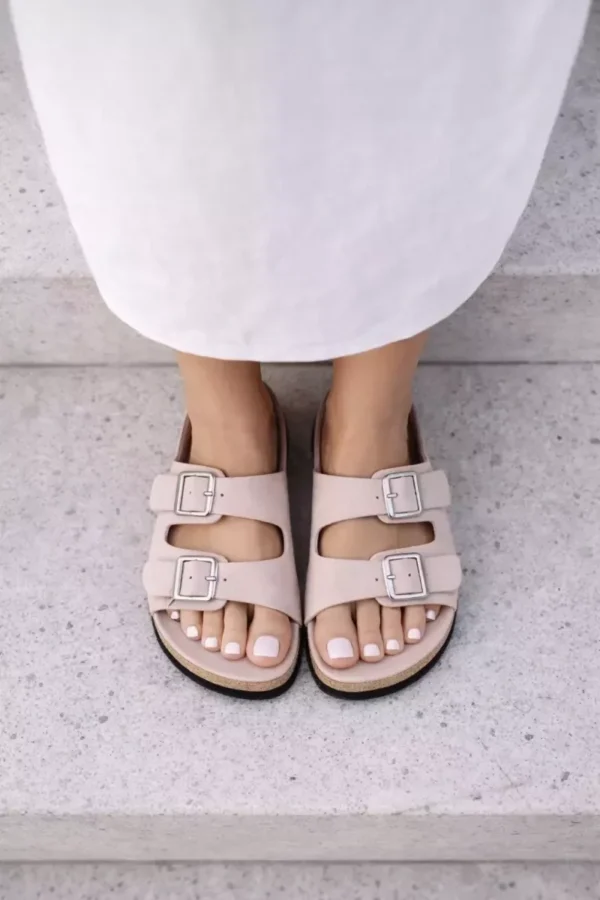 Sieviešu sandales ar sprādzēm ir izgatavotas no augstas kvalitātes ekoloģiskās ādas, kas padara tās ne tikai stilīgas, bet arī izturīgas. To dizains nodrošina komfortu valkāšanā, bet sprādzes piešķir eleganci un raksturu. Tās ir ideāli piemērotas ikdienas valkāšanai un dažādiem vasaras stiliem. Izvēloties savu izmēru, lūdzu, izmantojiet izmēru tabulu.