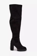 Sieviešu augstas garuma zābaki ir sievišķīga izvēle, kas skaisti izceļ kājas. Modelis, kas veidots uz augsta bloka papēža, vizuāli padara siluetu slaidāku un vienlaikus nodrošina stabilitāti un komfortu valkājot. Noapaļotais purngals piešķir kopējam izskatam maigu, klasisku pieskārienu. Zābaki ir bez auklas, un sānu rāvējslēdzējs atvieglo to uzvilkšanu. Ideāla izvēle sievietēm, kas novērtē modernu izskatu — tie labi sader ar kleitām un svārkiem, kā arī īsām šortēm, radot iespaidīgus stilus. Izvēloties izmēru, lūdzu, skatieties izmēru tabulu. Izvēloties izmēru, lūdzu, skatieties izmēru tabulu.
