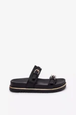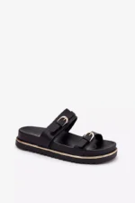 Stilīgas sieviešu platforma sandales, kas apvieno komfortu ar modernu izskatu. Priekšpusē ir divas siksnas ar sprādzēm, kas piešķir raksturu un diskrēti piesaista uzmanību. Platforma nodrošina pārliecību un stabilitāti visas dienas garumā. Ideāli piemērotas ikdienas valkāšanai, tās labi sader ar kleitām un biksēm, veidojot daudzpusīgu vasaras izskatu. Izvēloties izmēru, lūdzu, izmantojiet izmēru tabulu.