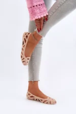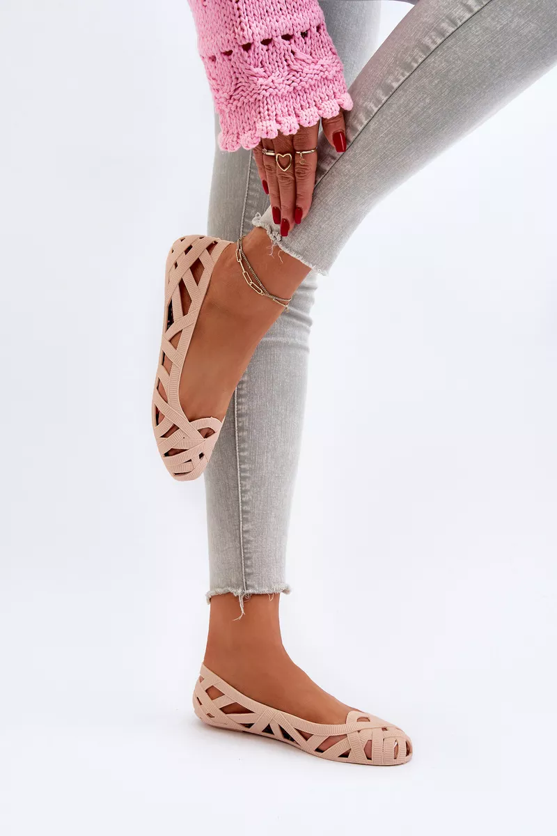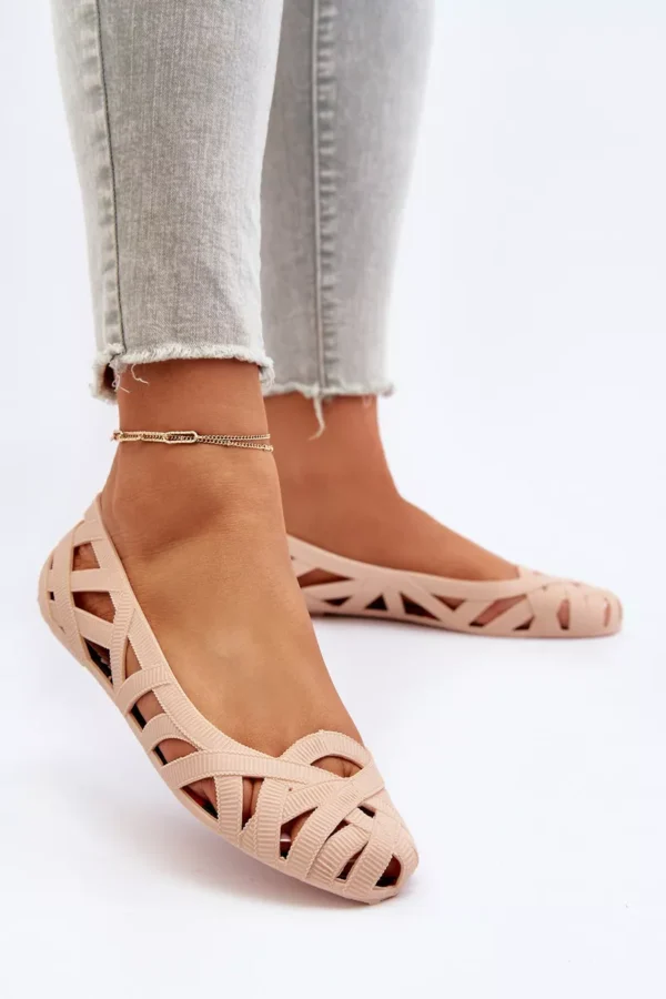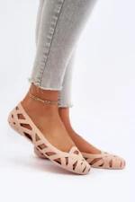 Sieviešu balerīnu kurpes ir izgatavotas no gumijas materiāla. Dekoratīvs dizains ar reljefiem siksniņām. Balerīnu kurpes ir ar plakanu papēdi. Mandeles formas purngals. Šis modelis ir ideāls karstām dienām! Izvēloties izmēru, skatieties izmēru tabulu.