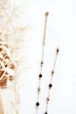 Sieviešu kaklarota ar melnām pērlītēm un zeltu