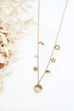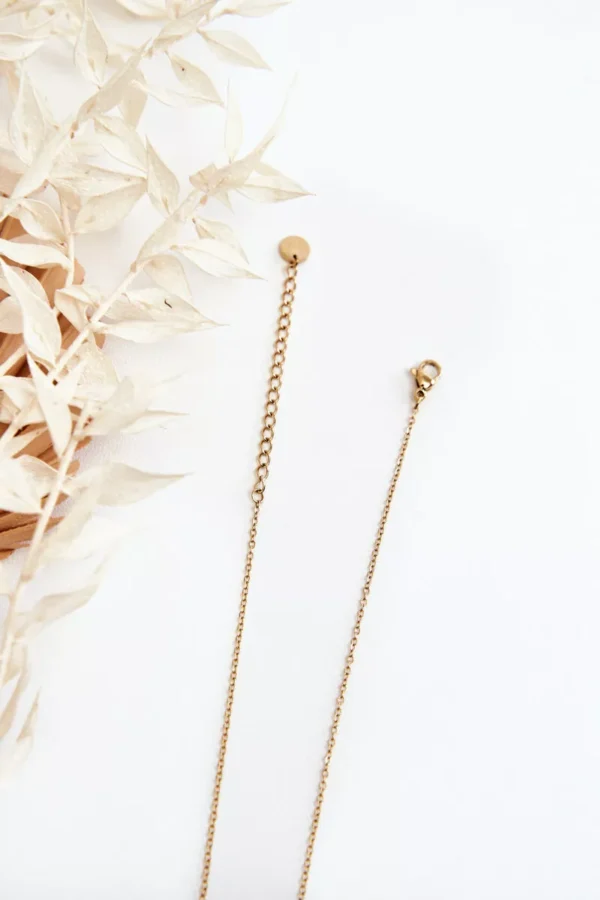 Šis unikālais kaklarota uz plānas ķēdes ir izgatavots no nerūsējošā tērauda. Tam ir moderni piekariņi. Tas tiek aizdarīts ar klasisku karabīnes aizdari. Jūs varat arī pielāgot tā garumu, lai tas atbilstu jūsu kaklam. Noteikti apskatiet arī citus mūsu kaklarotu dizainus!