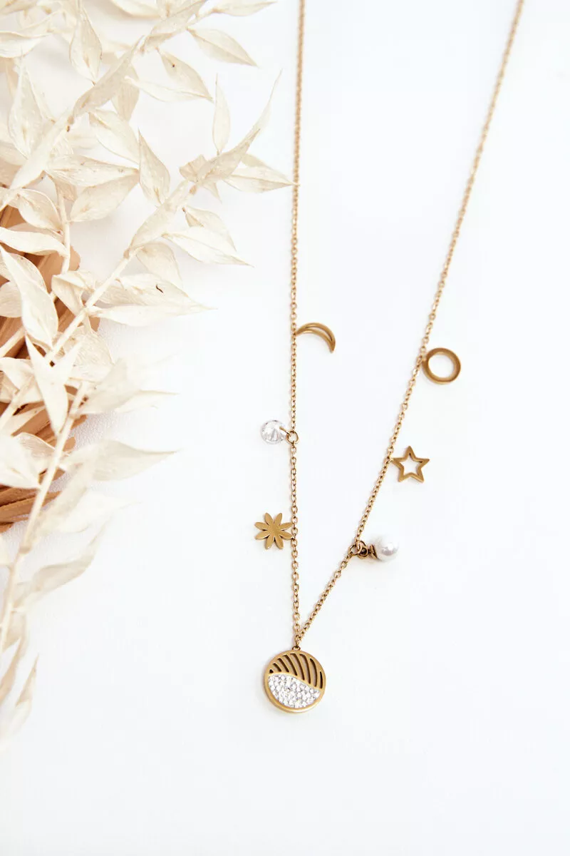Sieviešu ķēde ar moderniem piekariņiem zelta krāsā