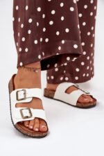 Sieviešu korķa platformas čības ar sprādzēm, baltas Vesina
