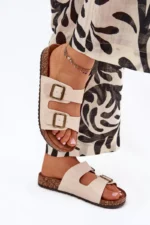 Sieviešu platformas čības ar formētu, videi draudzīgu zamšādas zoli ir komforta un modes apvienojums. Divas siksnas ar regulējamiem sprādzēm nodrošina perfektu piegulumu, un to modernais dizains pilnībā atbilst šīs sezonas tendencēm. Ideāli piemēroti vasaras stilam, tie labi sader ar kleitām, svārkiem vai biksēm, piešķirot viegluma pieskārienu jebkuram izskatam. Izvēloties savu izmēru, lūdzu, izmantojiet izmēru tabulu.