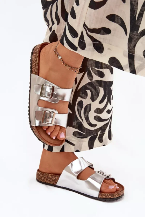 Sieviešu platformas čības ar formētu, videi draudzīgu zamšādas zoli ir komforta un modes apvienojums. Divas siksnas ar regulējamiem sprādzēm nodrošina perfektu piegulumu, un to modernais dizains pilnībā atbilst šīs sezonas tendencēm. Ideāli piemēroti vasaras stilam, tie labi sader ar kleitām, svārkiem vai biksēm, piešķirot viegluma pieskārienu jebkuram izskatam. Izvēloties savu izmēru, lūdzu, izmantojiet izmēru tabulu.
