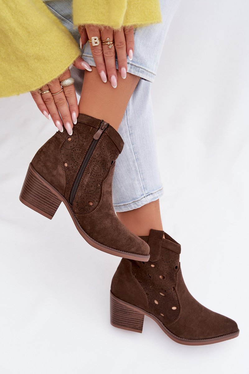 Šie sieviešu atklātie kowboju zābaki ir klasiskā rietumu stila un mūsdienu dizaina apvienojums. Izgatavoti no videi draudzīga zamšāda, tie izskatās viegli un stilīgi, bet smalkie atklātie izgriezumi piešķir tiem izteiksmīgu raksturu un smalku eleganci. Mandeļu formas purngals uzsver sievišķīgo siluetu, bet sānu rāvējslēdzējs nodrošina komfortu un ātru uzvilkšanu. Šie kovboju zābaki ir ideāli piemēroti ikdienas pilsētas stilam vai kā oriģināls akcents izteiksmīgākiem izskatiem. Ideāli piemēroti sievietēm, kas vēlas apvienot komfortu ar modernu un izteiksmīgu izskatu. Izvēloties savu izmēru, lūdzu, izmantojiet izmēru tabulu. Izvēloties savu izmēru, lūdzu, izmantojiet izmēru tabulu.
