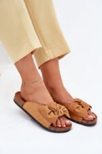 Klasiskas sieviešu čības, izgatavotas no videi draudzīga zamšāda, ar korķa zoli, kas apvieno komfortu ar modernu izskatu. Priekšpusē ir divas siksnas ar sprādzēm, kas nodrošina pareizu piestiprināšanu. Ekoloģiskā zamšāda zole garantē komfortu visas dienas garumā. Šie čības ir ideāli piemērotas ātrai iziešanai, iepirkšanās vai pastaigām, un kļūs neaizstājamas jūsu ikdienas stilā. Izvēloties izmēru, skatieties izmēru tabulu.