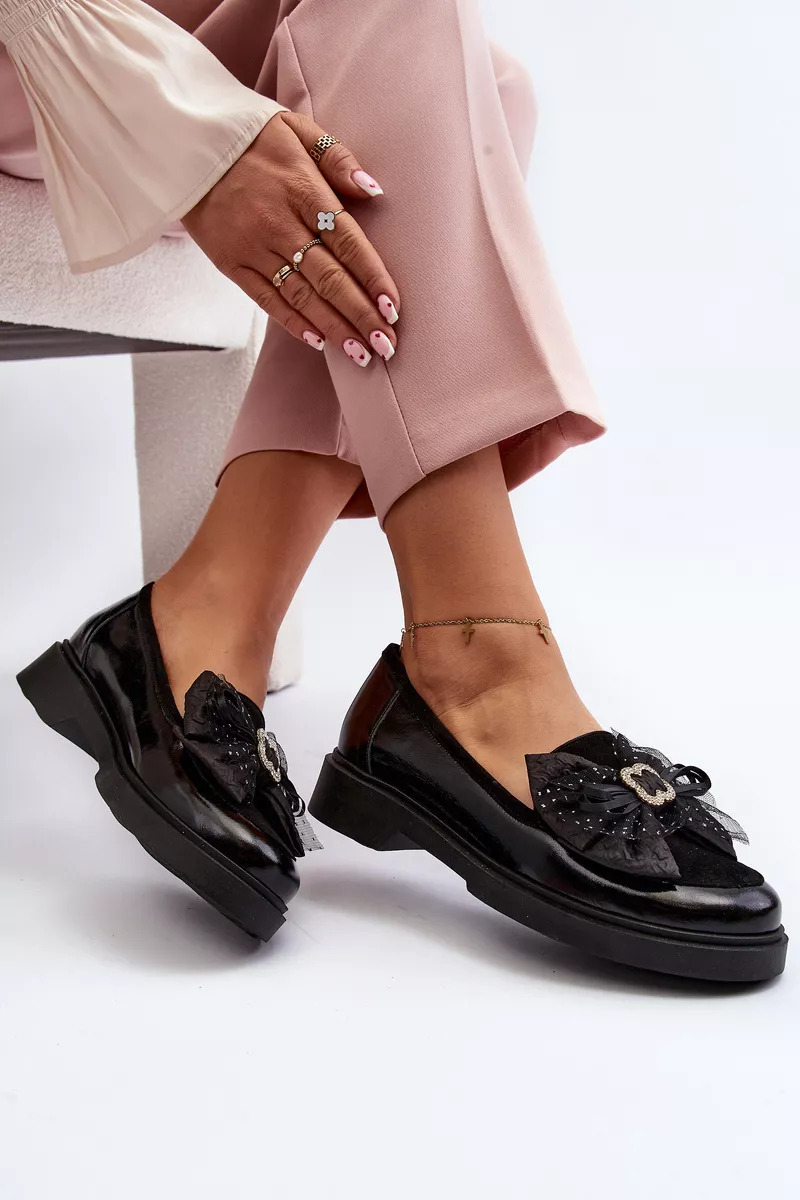 Sieviešu mokasīni no dabīgās ādas. Dekorēti ar lielu lenti priekšā. Plakani papēži. Noapaļoti purngali. Mīksta ādas zole nodrošina komfortu lietošanas laikā. Šis supermodernais stils lieliski iederēsies daudzos pavasara tērpos! Izvēloties izmēru, pārbaudiet izmēru tabulu.