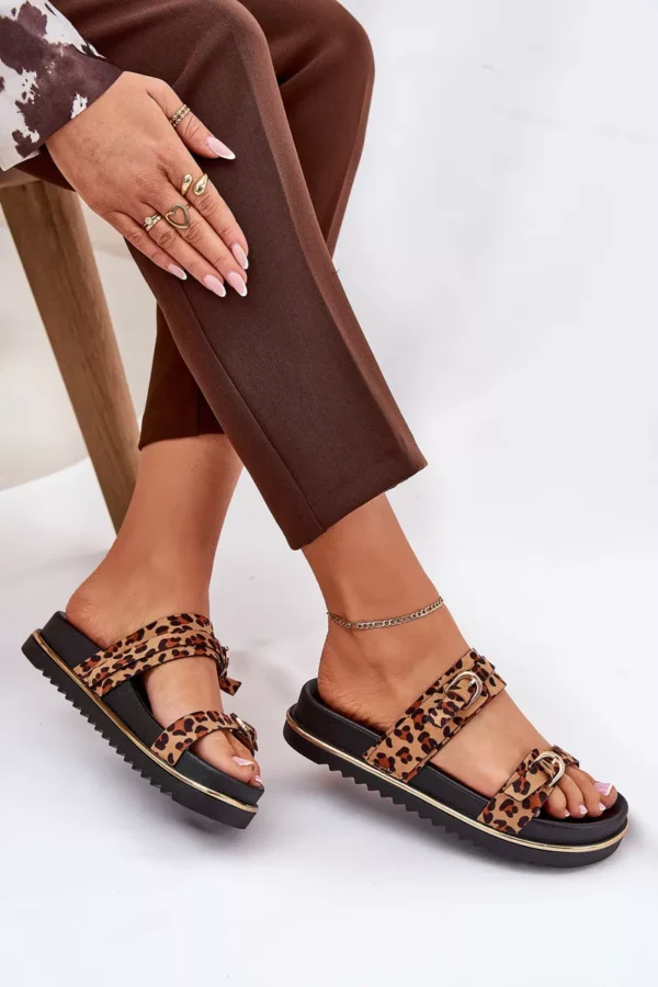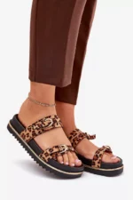 Stilīgas sieviešu platforma sandales, kas apvieno komfortu ar modernu izskatu. Priekšpusē ir divas siksnas ar sprādzēm, kas piešķir raksturu un diskrēti piesaista uzmanību. Platforma nodrošina pārliecību un stabilitāti visas dienas garumā. Ideāli piemērotas ikdienas valkāšanai, tās labi sader ar kleitām un biksēm, veidojot daudzpusīgu vasaras izskatu. Izvēloties izmēru, lūdzu, izmantojiet izmēru tabulu.