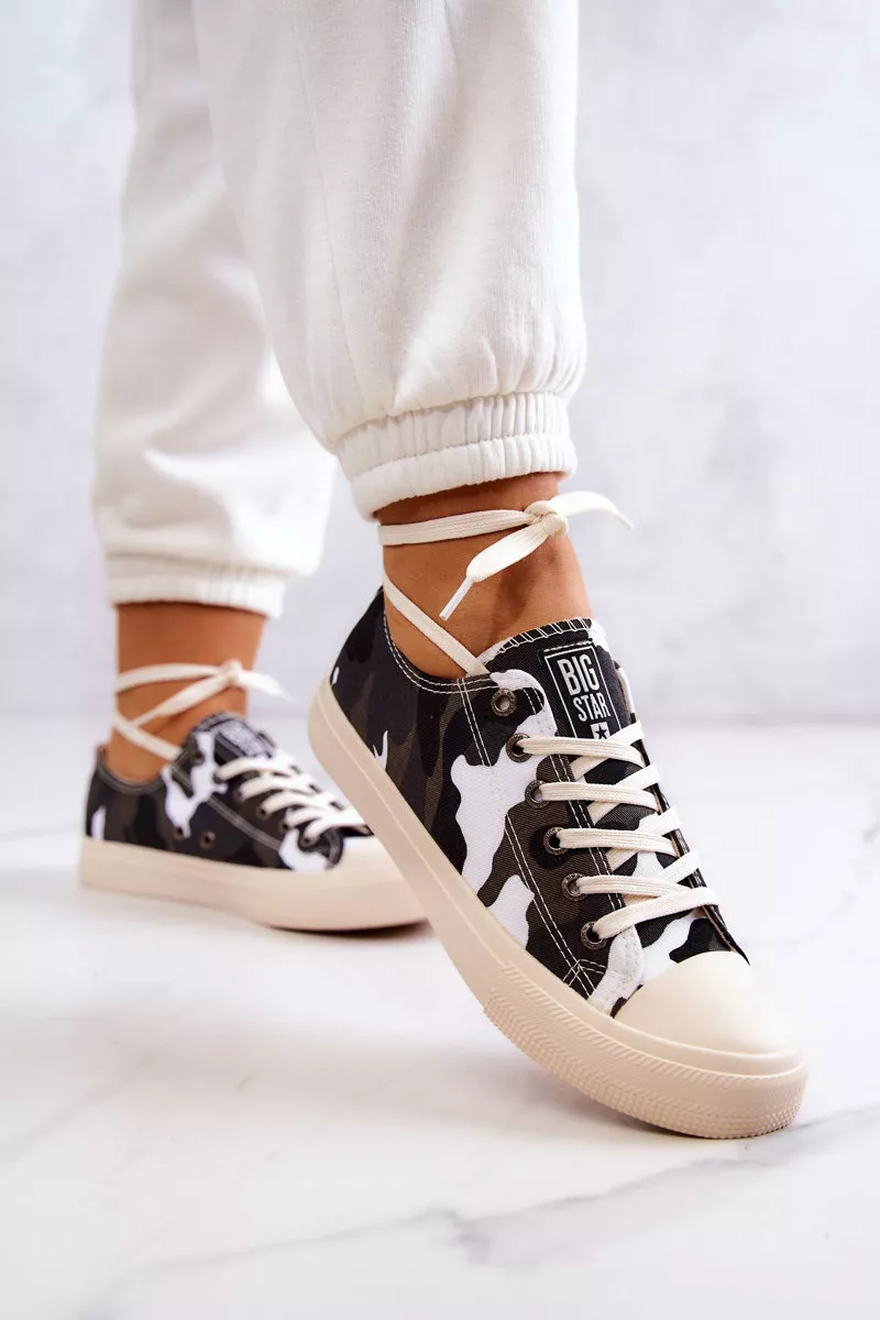 Vieglas un mūžam aktuālas Big Star sporta kurpes no tekstilmateriāla. Tām ir klasiskais auklas aizdare. Sporta kurpju priekšpuse ir pastiprināta ar gumiju. Neslīdoša zole. Šie interesanta dizaina sporta apavi lieliski izskatīsies kopā ar tūlas svārkiem vai klasiskajiem džinsiem! Tie noteikti ir jāiegādājas! Izvēloties izmēru, izmantojiet izmēru tabulu.