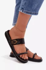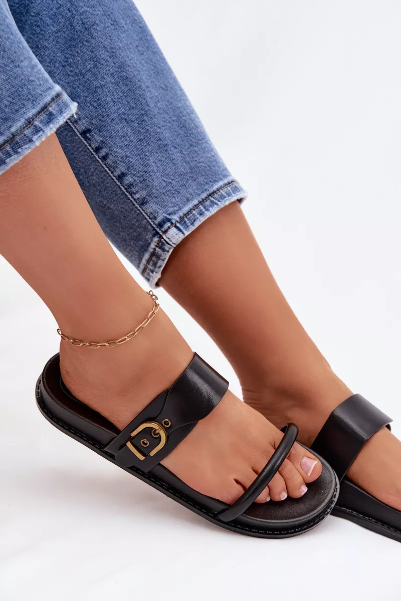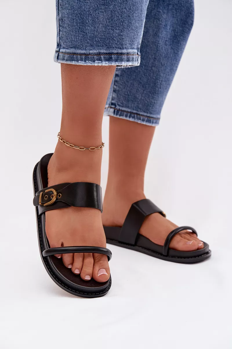 Praktiskas un stilīgas sieviešu čības ir lieliska izvēle siltajām dienām. Divas siksnas no videi draudzīgas ādas, papildinātas ar elegantu zelta sprādzi, piešķir visam modernu un sievišķīgu raksturu. Profilēta zole nodrošina komfortu un labāku pielāgošanos pēdai. Šis modelis ir ideāli piemērots ikdienas vasaras apģērbiem. Izvēloties savu izmēru, lūdzu, izmantojiet izmēru tabulu.