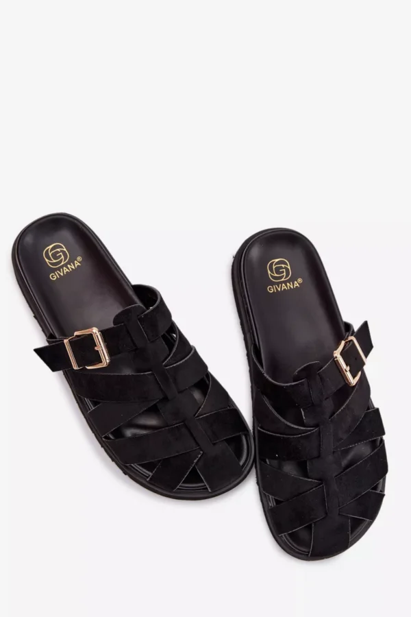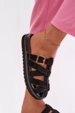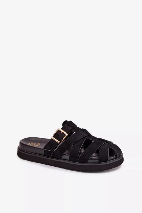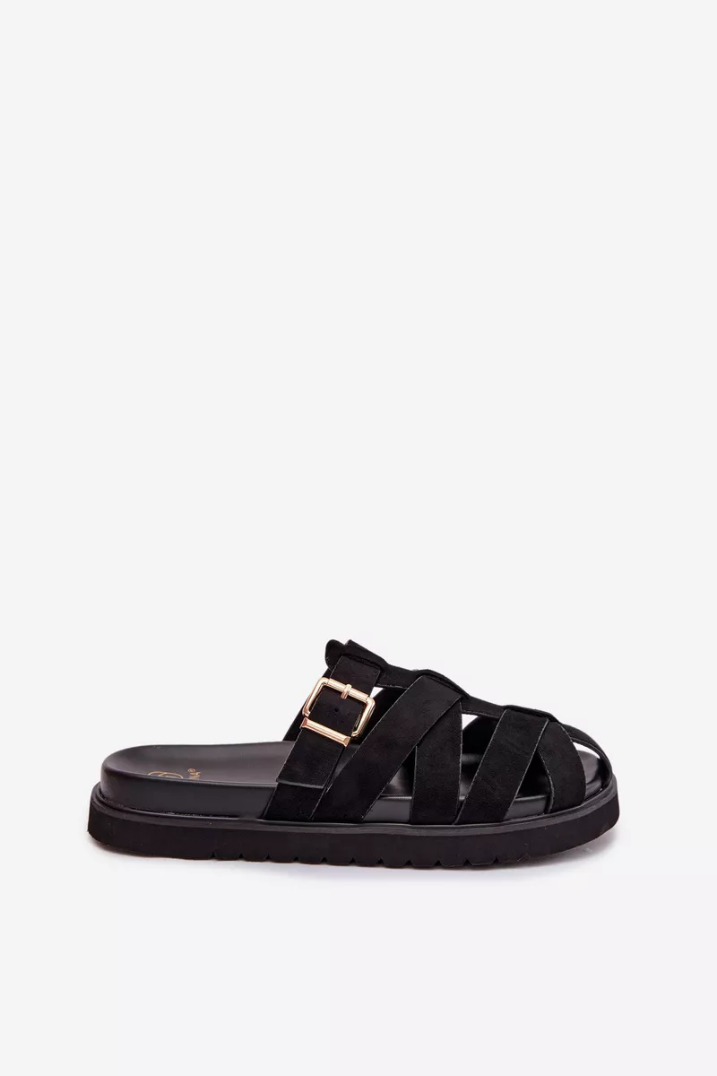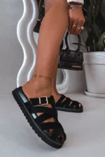 Stilīgas sieviešu čības no videi draudzīga zamšāda ir moderns un ērts izvēles variants siltajam laikam. Platforma izceļ siluetu un nodrošina komfortu valkāšanai. Siksnas, kas rotātas ar zelta sprādzi, piešķir eleganci un rada izteiksmīgu akcentu. Šie čības ir ideāli piemēroti gan ikdienas, gan stilīgākiem vasaras apģērbiem. Izvēloties izmēru, lūdzu, izmantojiet izmēru tabulu.
