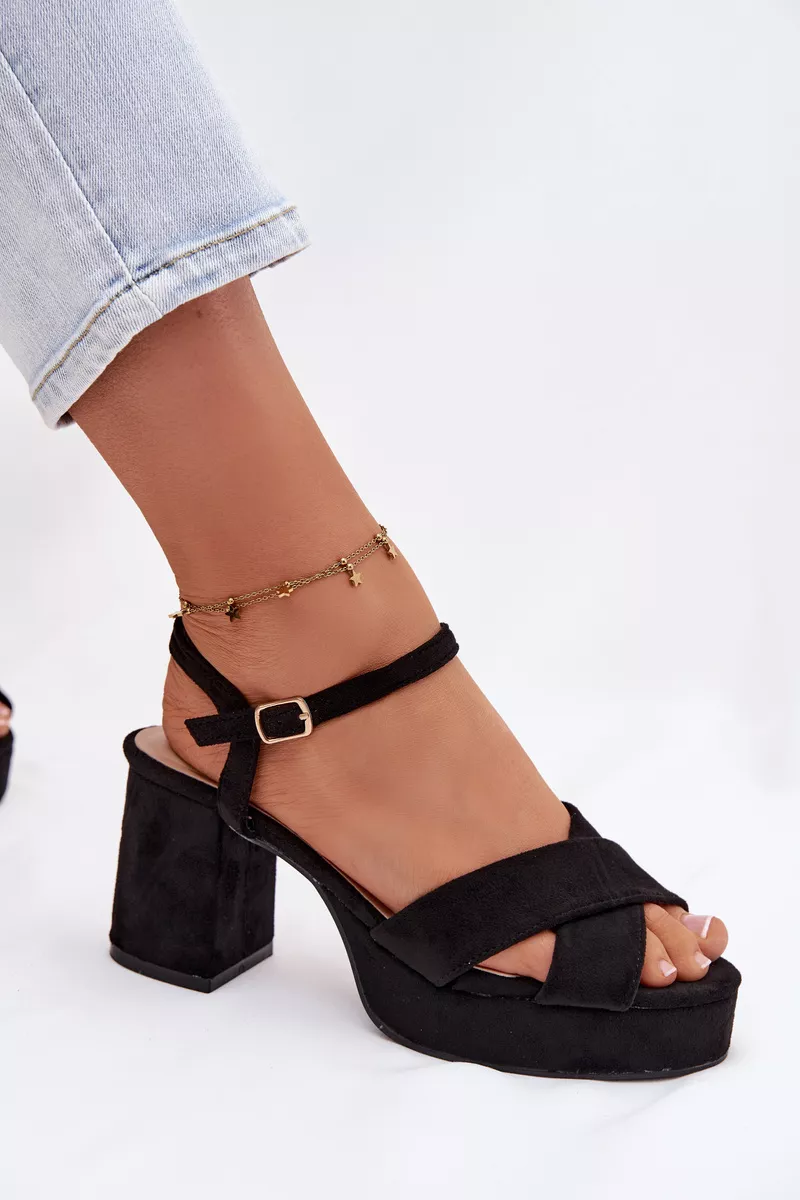 Sieviešu sandales, izgatavotas no videi draudzīgas ādas. Modelis ar stabilu blokveida papēdi un platformu nodrošina komfortu un pārliecību katrā solī, vienlaikus uzsverot siluetu. Divas savstarpēji savītas siksnas priekšā stilīgi izceļ pēdu un piešķir visam izskatam modernu izskatu. Regulējama siksna ar sprādzi ļauj sandales ideāli pielāgot kājai. Šis modelis ir ideāls gan ikdienas valkāšanai, gan īpašiem gadījumiem. Izvēloties izmēru, lūdzu, izmantojiet izmēru tabulu.