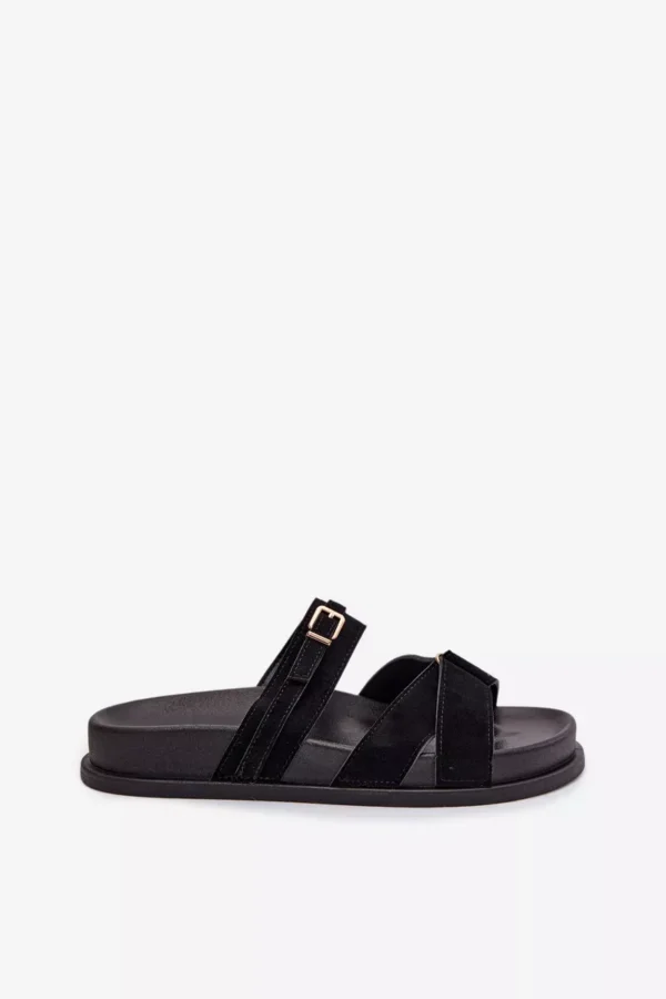 Stilīgas sieviešu sandales no videi draudzīga zamšāda ir ērta izvēle siltajām dienām. Modelis ar siksnām, kas rotātas ar nelielu zelta sprādzi, piesaista uzmanību un piešķir visam izskatam smalku, sievišķīgu raksturu. Maigi izliektā zole nodrošina komfortu un labāku piegulumu. Šie sandales ir ideāli piemēroti ikdienas vasaras apģērbiem. Izvēloties izmēru, lūdzu, skatieties izmēru tabulu.