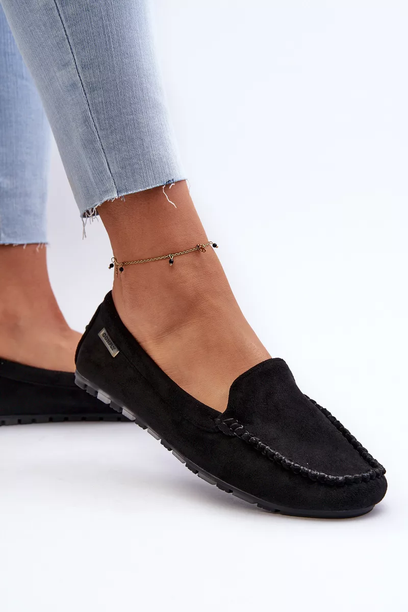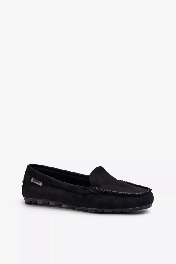 Sieviešu mokasīni no ekoloģiskas zamšādas, melnā krāsā Renelia
