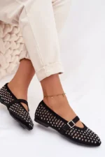 Sieviešu balerīnu kurpes no videi draudzīga zamšāda ir stilīga izvēle siltajam laikam. Aizsargāta virsa, kas rotāta ar cirkoniju, piešķir tām smalku mirdzumu. Siksna ar sprādzi virs pēdas nodrošina labu piegulumu un uzsver modeļa sievišķību. Apļveida purngals papildina klasisko siluetu, padarot šīs balerīnu kurpes par lielisku izvēli gan ikdienas valkāšanai, gan elegantiem pasākumiem. Lūdzu, izvēloties savu izmēru, skatieties izmēru tabulu.