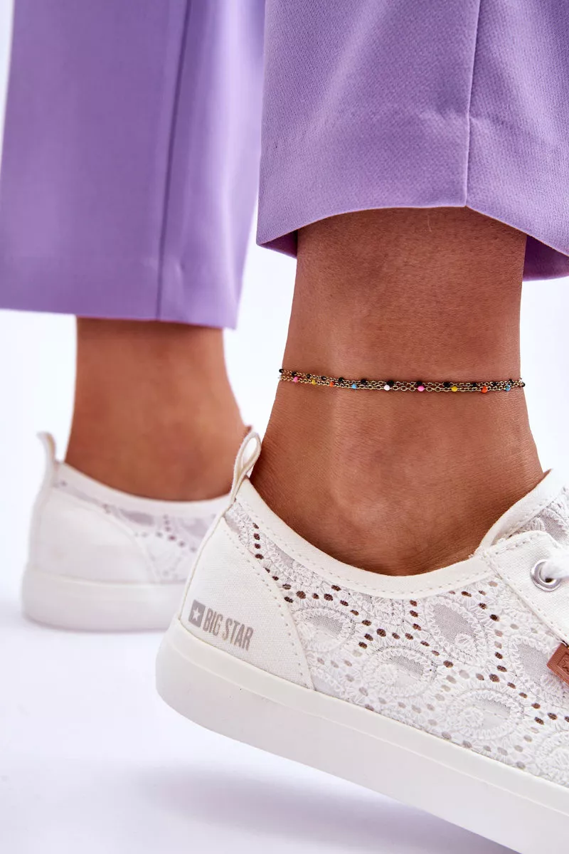 Sieviešu sporta apavi no Polijas zīmola BIG STAR. Šie klasiskie sporta apavi ir piemēroti daudziem stiliem. Apavi ideāli pielāgojas pēdas formai, tiem ir mīksta auduma odere un neslīdoša zole. Noteikti apskatiet visu mūsu BIG STAR apavu kolekciju. Apaviem ir balta uzlika ar Big Star logotipu. Izvēloties izmēru, izmantojiet izmēru tabulu.