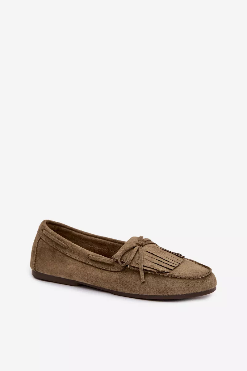 Šie plakanie sieviešu mokasīni, kas izgatavoti no videi draudzīga zamšāda, ir stilīga un ērta izvēle ikdienas valkāšanai. Tiem ir dekoratīvi kniedīši un lenta priekšā. Mīkstais materiāls nodrošina komfortu, bet plakanais zols padara tos ideālus ikdienas valkāšanai. Šie mokasīni ir lielisks papildinājums gan klasiskam, gan brīvākam stilam. Lūdzu, izvēloties izmēru, skatieties izmēru tabulu.