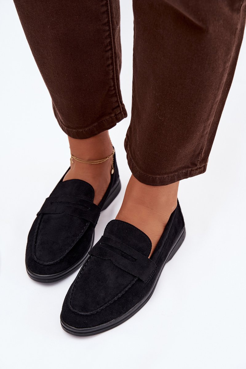 Sieviešu mokasīni no ekoloģiskas zamšādas, melnā krāsā Renelia