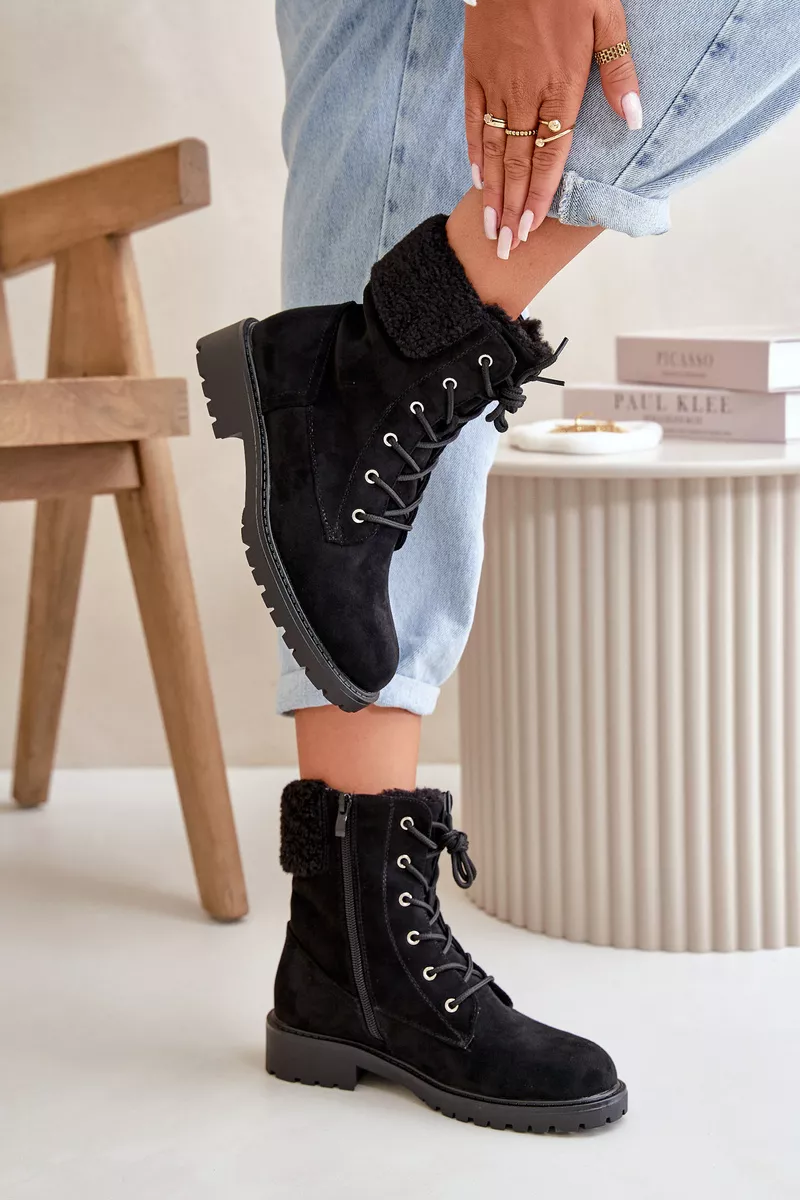Sieviešu zābaki no mīksta, videi draudzīga zamšāda. Izolēti ar seguma oderi un kažokādas apdari. Plakana papēža un platforma. Apaļš purngals, fiksēta potīte. Aizdarīti ar auklām. Izvēloties izmēru, lūdzu, skatieties izmēru tabulu.