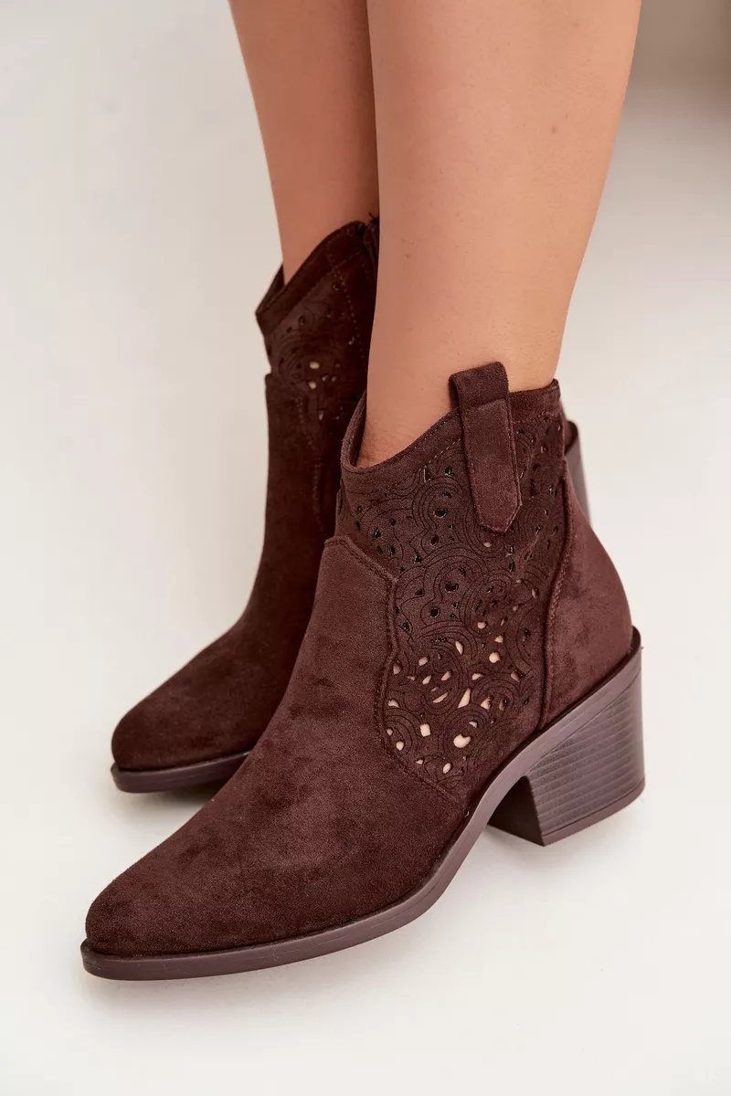 S.Barski zīmola sieviešu potītes zābaki, kas iedvesmoti no kovboju stila, ir iespaidīgs akcents pavasara stilos. Izgatavoti no videi draudzīga zamšāda, tie izskatās viegli un stilīgi, bet atklātā purngala augšdaļa piešķir tiem oriģinālu, pievilcīgu raksturu. Stabilais, konusveida papēdis nodrošina komfortu un piešķir rietumu stila noskaņu. Mandeles formas purngals izsmalcina kājas, uzsverot sievišķīgo siluetu. Šie puszābaki ir ideāli piemēroti gan ikdienas apģērbiem, gan izteiksmīgākiem boho stila apģērbiem. Izvēloties izmēru, lūdzu, izmantojiet izmēru tabulu.