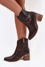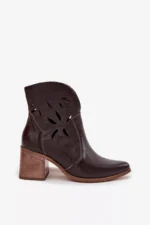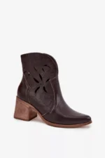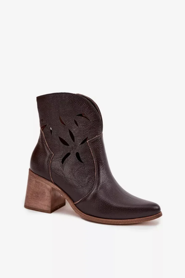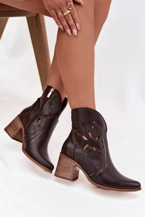 Sieviešu perforēti zābaki no īstas ādas uz papēža Zazoo 3690 šokolādes krāsā