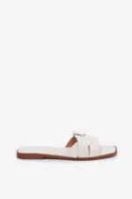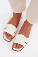 Šie stilīgie sieviešu čības, kas izgatavotas no videi draudzīgas ādas, ir rotātas ar elegantiem un ērtiem vasaras akcentiem. Plakana zole nodrošina komfortu ejot, bet priekšējās siksnas izsmalcina pēdu un piešķir visai apavai modernu izskatu. Klasiskais, bet elegants dizains ļauj šiem čībām perfekti papildināt gan ikdienas, gan formālākus stilus. Ideāli piemēroti pastaigām, iepirkšanās un vasaras izbraucieniem. Izvēloties izmēru, lūdzu, izmantojiet izmēru tabulu.
