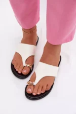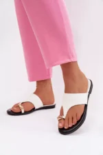 Šie elegantie sieviešu pludmales čības, kas izgatavotas no videi draudzīgas ādas, ir stilīga izvēle vasaras dienām. Plakana papēža nodrošina komfortu ikdienas valkāšanai, bet zelta detaļas uz pirksta piešķir smalku, elegantu pieskārienu. Vienkāršais, laikmetīgs dizains ir ideāli piemērots dažādiem vasaras stiliem. Lūdzu, izvēloties savu izmēru, skatieties izmēru tabulu.