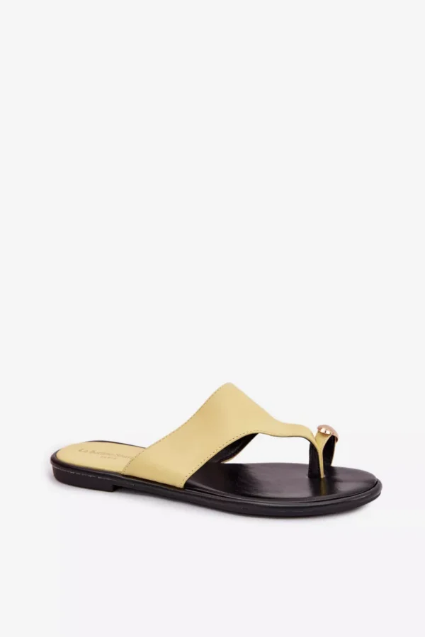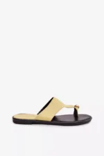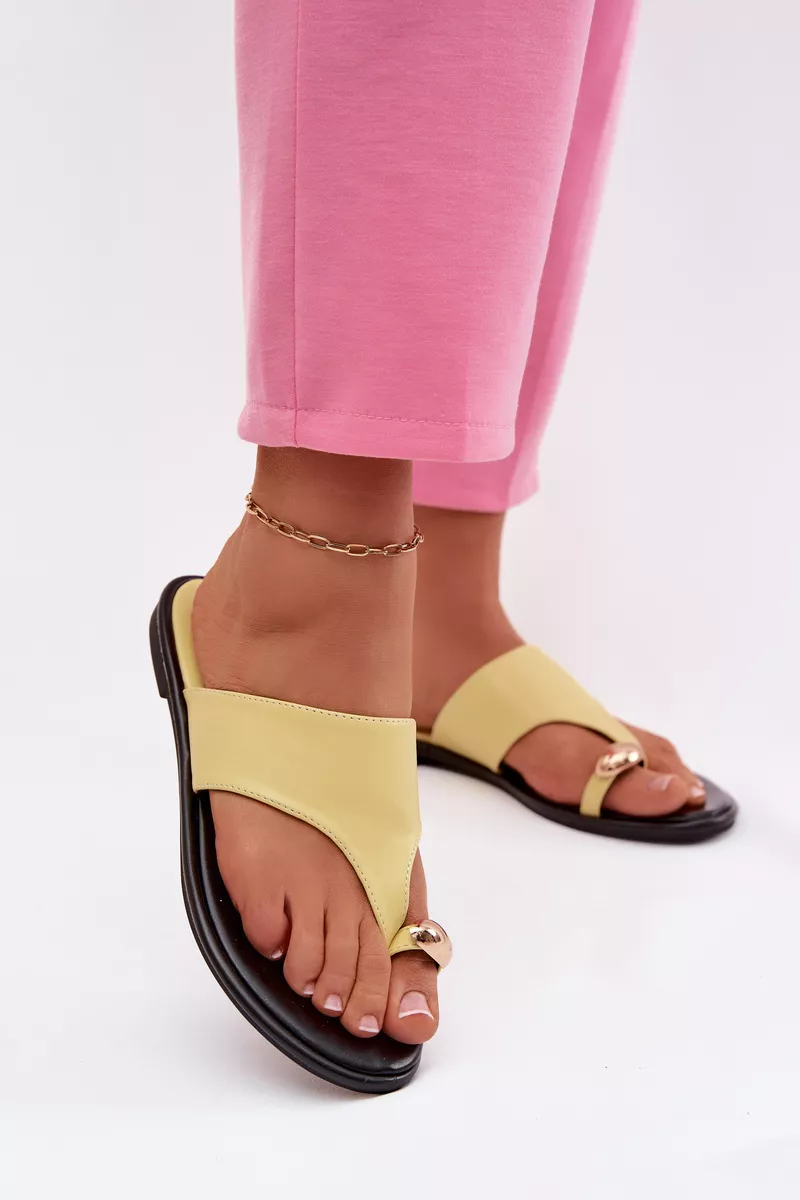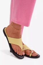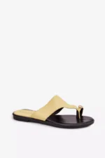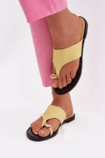 Sieviešu plakanas ekoloģiskās ādas sandales ar zelta detaļām, dzeltenas Lavessa