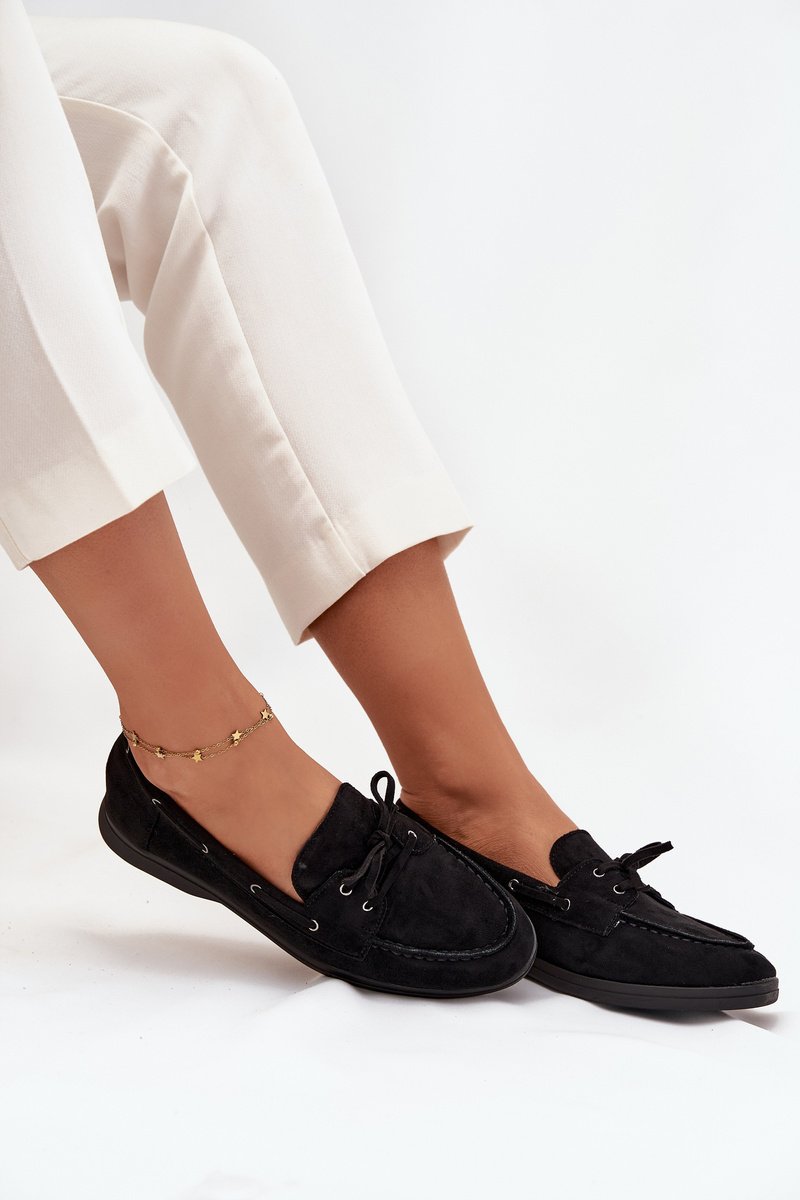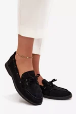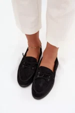Šie sieviešu mokasīni, kas izgatavoti no mīksta, videi draudzīga zamšāda, ir ērta un stilīga izvēle ikdienas valkāšanai. Tie ir aprīkoti ar plakanu zoli, kas nodrošina komfortu, bet noapaļotais purngals piešķir tiem klasisku izskatu. Smalka strīpa priekšā un ap augšējo daļu rada interesantu detaļu, kas uzsver šī modeļa eleganci un mūžīgo izskatu. Ideāli piemēroti ikdienas stilam. Izvēloties izmēru, lūdzu, izmantojiet izmēru tabulu. Izvēloties izmēru, lūdzu, izmantojiet izmēru tabulu.
