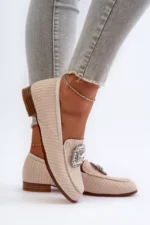 Šie elegantie plakanie kurpes ir lieliska izvēle sievietēm, kas novērtē komfortu un stilu. Mīkstā ādas zole nodrošina komfortu visas dienas garumā, bet smalkā sprādze priekšā piešķir eleganci un oriģinalitāti. Lūdzu, izvēloties izmēru, skatieties izmēru tabulu.
