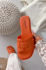 Sieviešu plakanas papēža oranžas čības Lorania