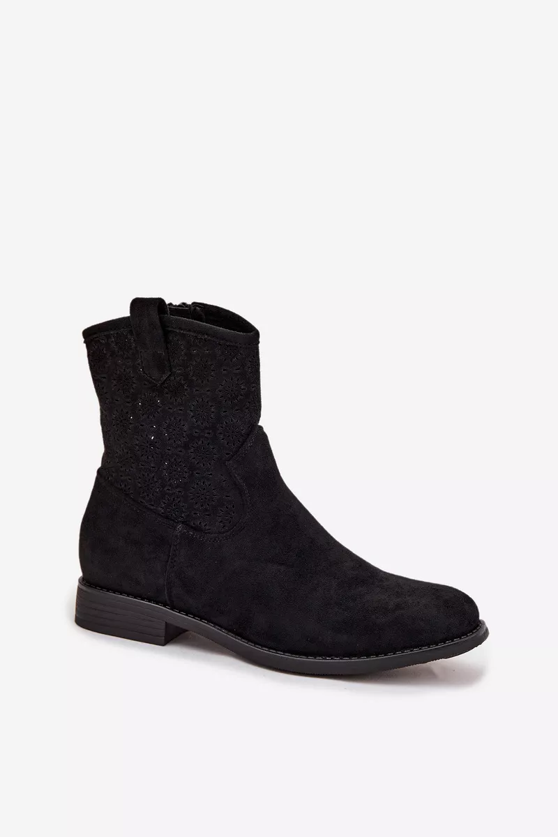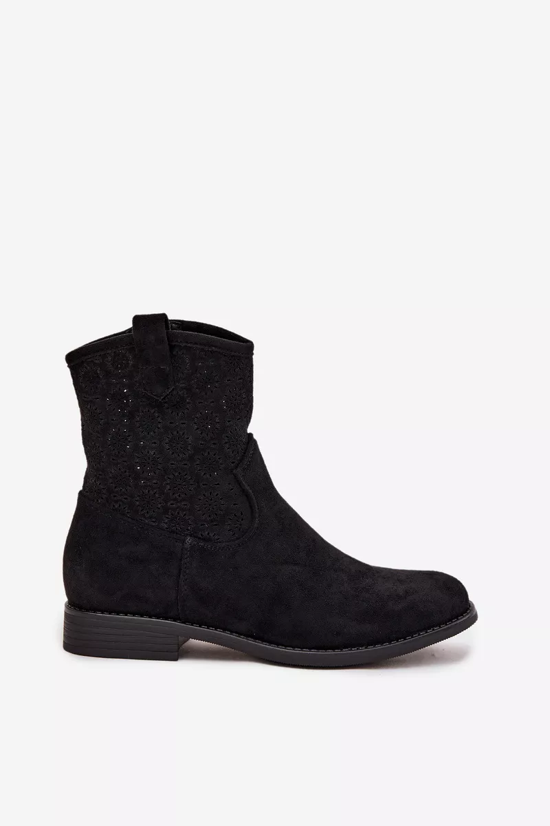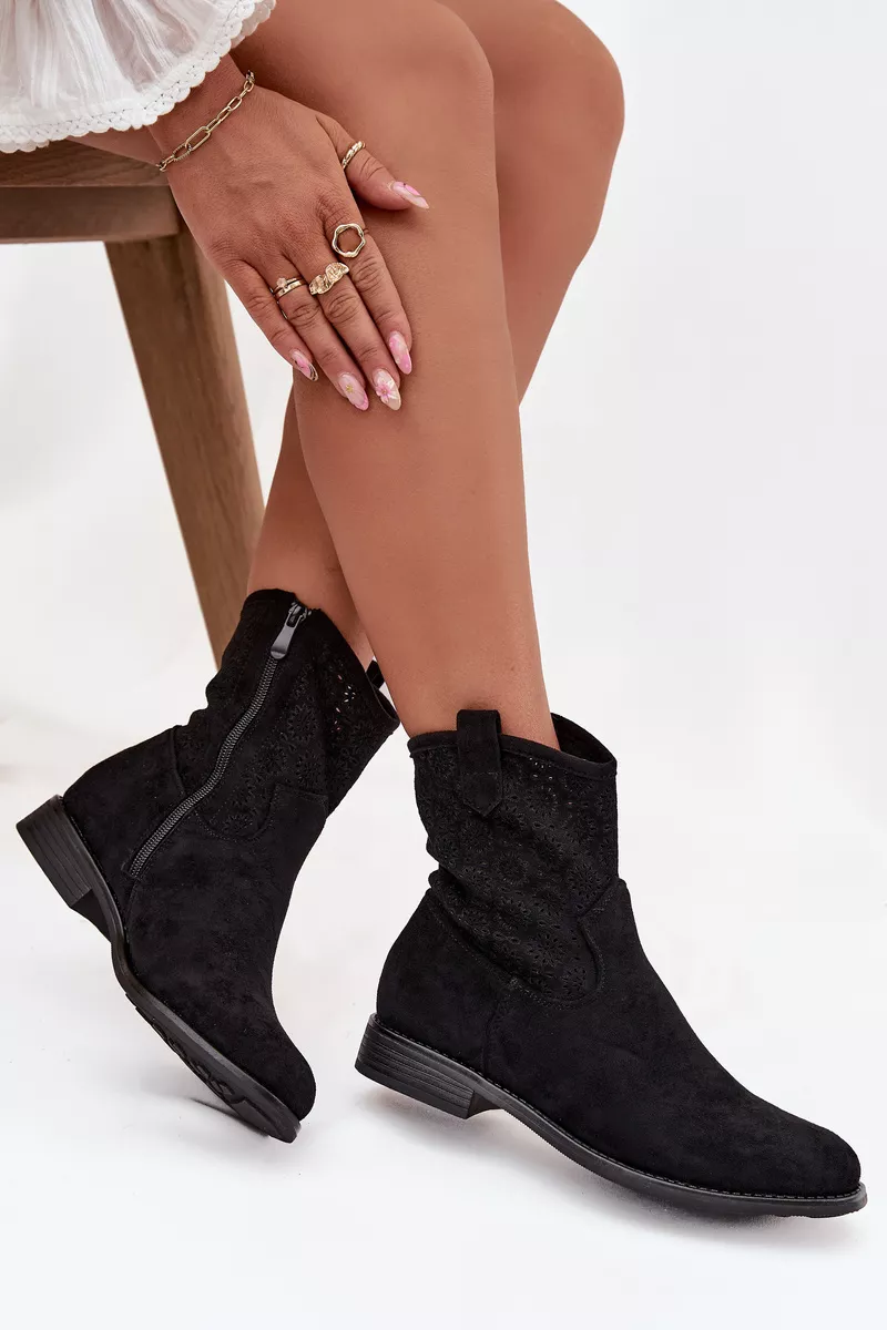 Mājas lapa » Sieviešu apavi » Sieviešu zābaki » Sieviešu plakanas papēža zābaki ar atvērtu rakstu S.Barski HY52-530 Melni