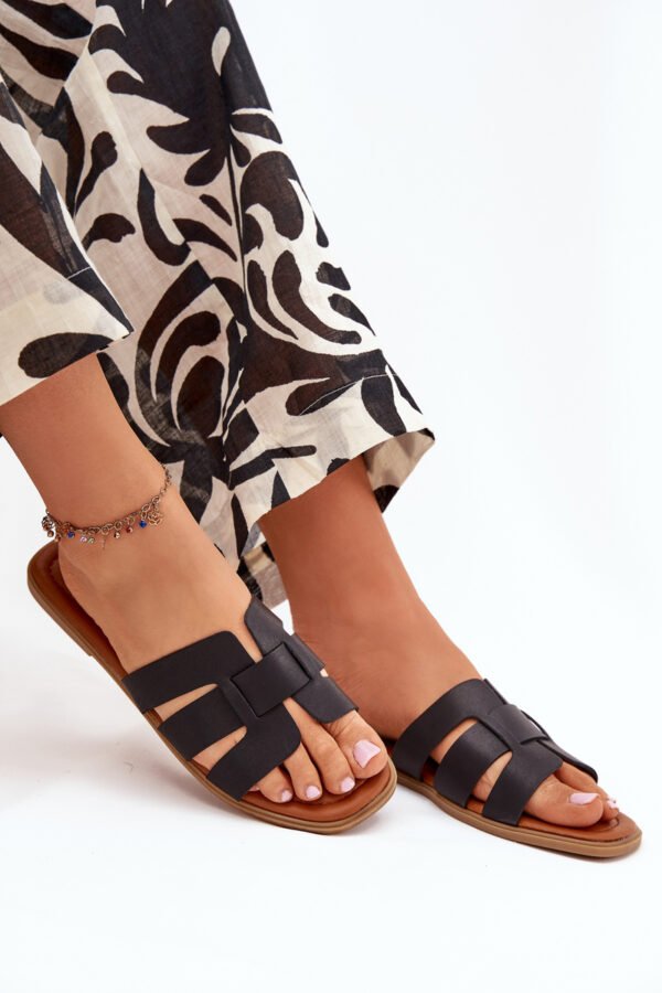 Sieviešu plakanas papēžu sandales, melnas Mirona