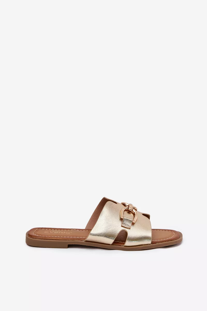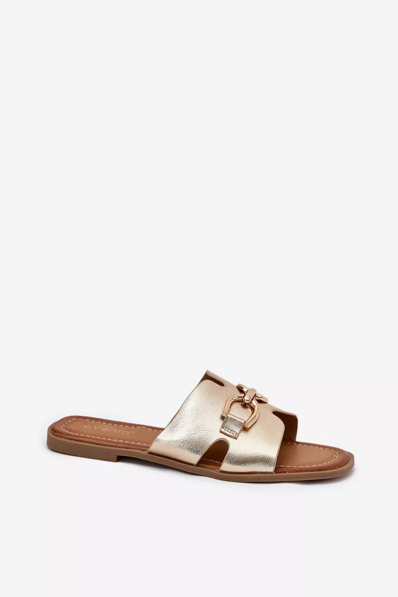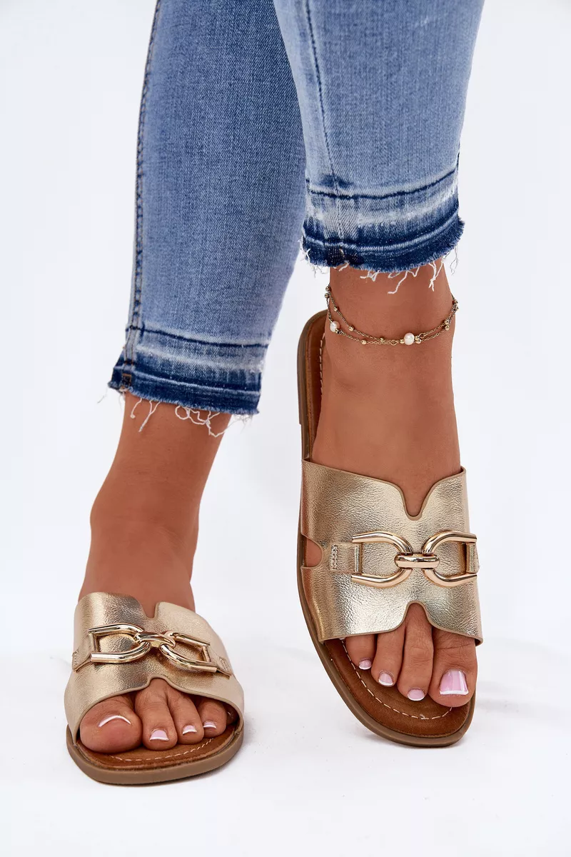 Sieviešu čības, kas izgatavotas no videi draudzīgas ādas. Tās ir ar plakanu papēdi, kas nodrošina komfortu visas dienas garumā. Priekšpusē ir izsmalcināts zelta dekoratīvs elements, kas piešķir tām unikālu raksturu. Ideāli piemērotas ikdienas valkāšanai, tās labi sader ar ikdienas apģērbu. Izvēloties izmēru, skatieties izmēru tabulu.