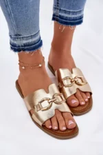 Sieviešu plakanās sandales ar dekoratīviem elementiem Golden Amiresna