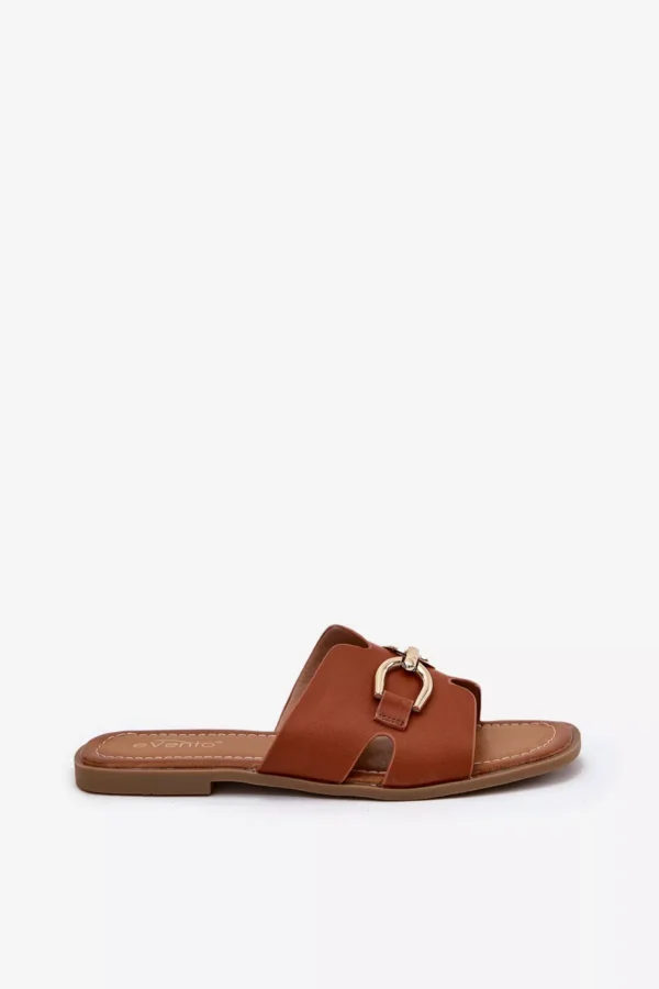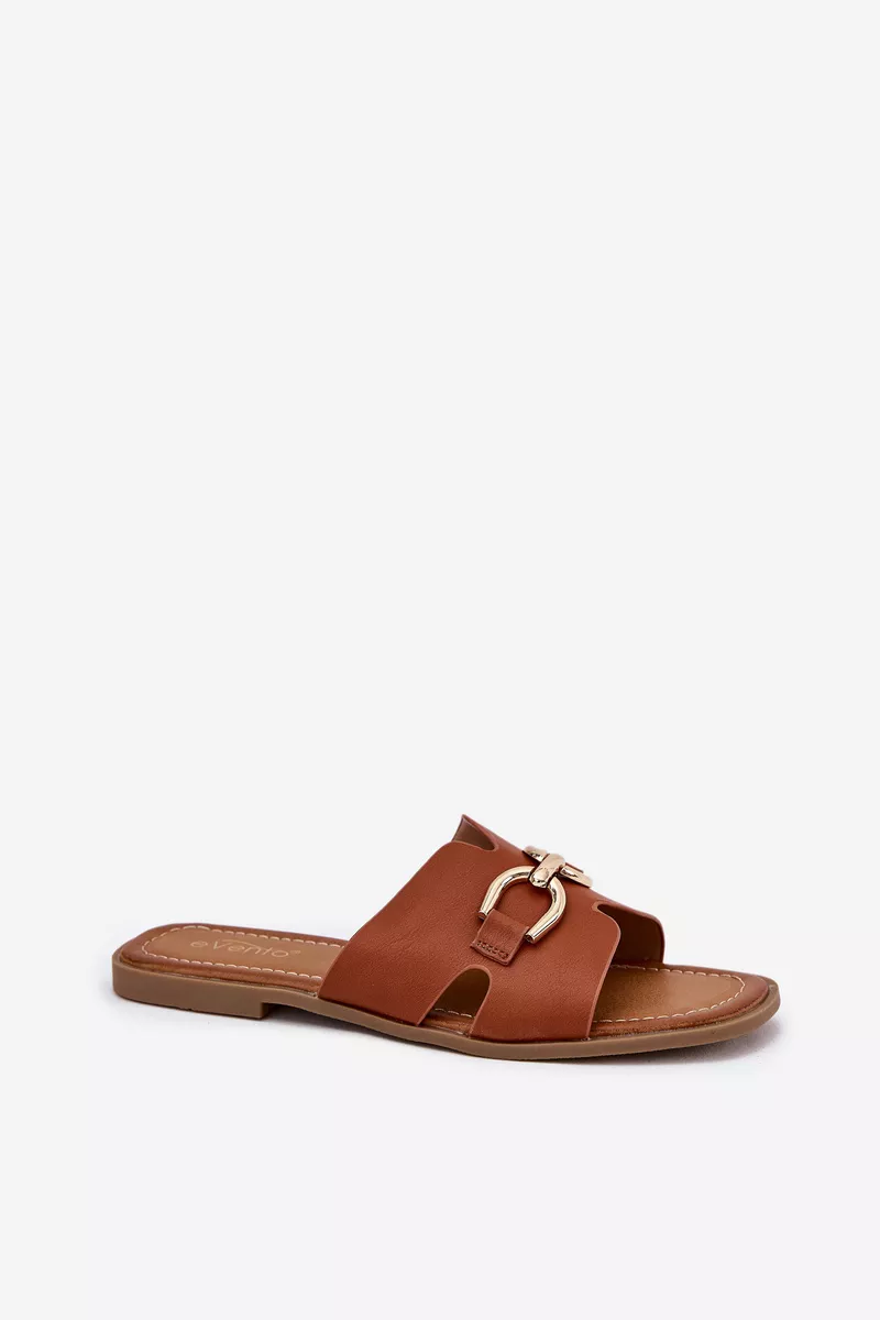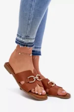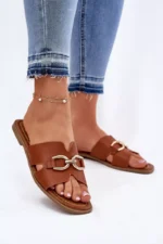 Sieviešu čības, kas izgatavotas no videi draudzīgas ādas. Tās ir ar plakanu papēdi, kas nodrošina komfortu visas dienas garumā. Priekšpusē ir izsmalcināts zelta dekoratīvs elements, kas piešķir tām unikālu raksturu. Ideāli piemērotas ikdienas valkāšanai, tās labi sader ar ikdienas apģērbu. Izvēloties izmēru, skatieties izmēru tabulu.