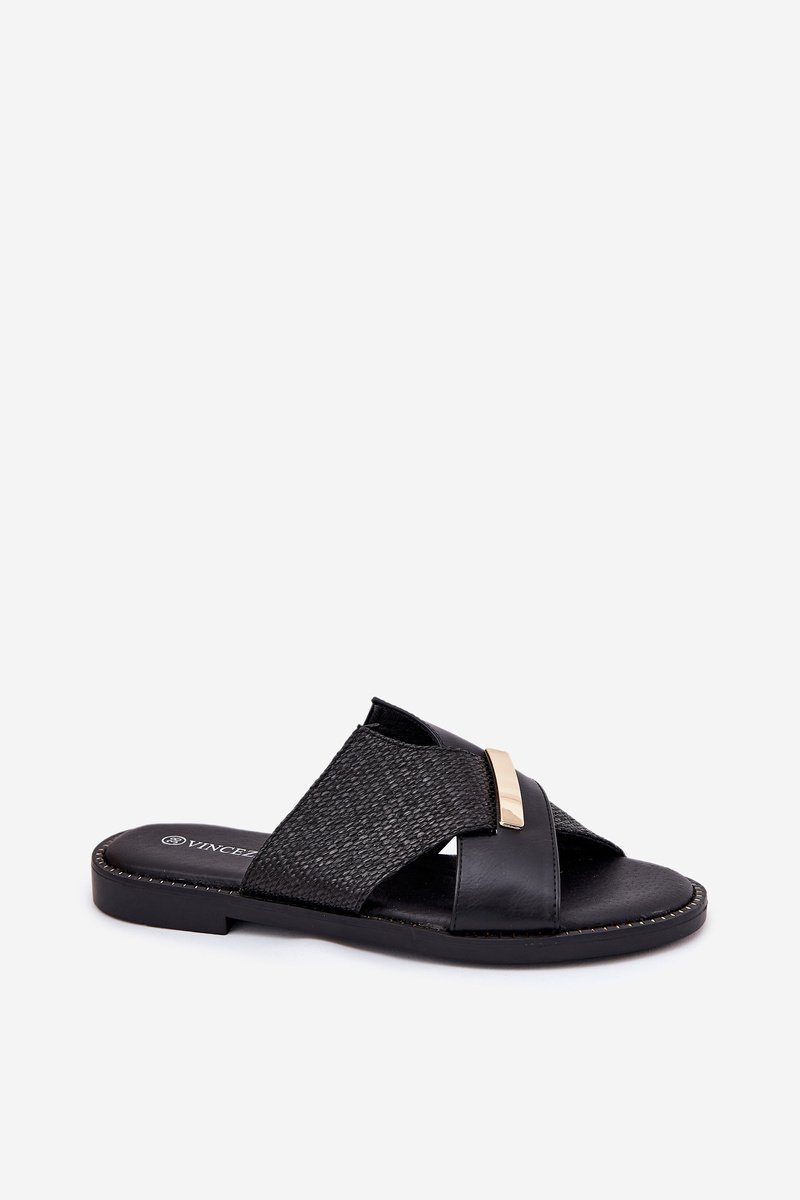 Sieviešu plakanās sandales ar dekoratīviem elementiem Vinceza 17385 Melna 16.65