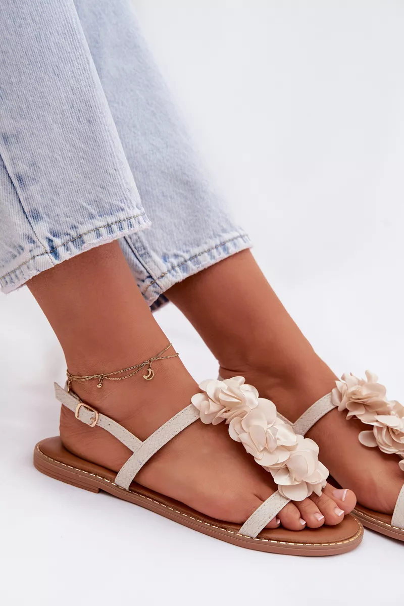 Šie stilīgie sieviešu sandales, kas izgatavoti no videi draudzīgas ādas, ir eleganti apdarināti ar spīdīgām vīlēm, kas piešķir smalku mirdzumu. Regulējama siksna ar sprādzi nodrošina perfektu pielāgojumu. Šī modeļa lielākā priekšrocība ir izteiksmīgie auduma gredzeni, kas kalpo kā dekoratīvs akcents, piesaista uzmanību un uzsver sievišķību. Mīkstā zole nodrošina komfortu visas dienas garumā, padarot šos sandales ideālus vasaras stila apģērbiem. Izvēloties izmēru, lūdzu, izmantojiet izmēru tabulu.