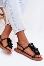Šie stilīgie sieviešu sandales, kas izgatavoti no videi draudzīgas ādas, ir eleganti apdarināti ar spīdīgām vīlēm, kas piešķir smalku mirdzumu. Regulējama siksna ar sprādzi nodrošina perfektu pielāgojumu. Šī modeļa lielākā priekšrocība ir izteiksmīgie auduma gredzeni, kas kalpo kā dekoratīvs akcents, piesaista uzmanību un uzsver sievišķību. Mīkstā zole nodrošina komfortu visas dienas garumā, padarot šos sandales ideālus vasaras stila apģērbiem. Izvēloties izmēru, lūdzu, izmantojiet izmēru tabulu.