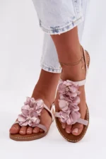 Šie stilīgie sieviešu sandales, kas izgatavoti no videi draudzīgas ādas, ir eleganti apdarināti ar spīdīgām vīlēm, kas piešķir smalku mirdzumu. Regulējama siksna ar sprādzi nodrošina perfektu pielāgojumu. Šī modeļa lielākā priekšrocība ir izteiksmīgie auduma gredzeni, kas kalpo kā dekoratīvs akcents, piesaista uzmanību un uzsver sievišķību. Mīkstā zole nodrošina komfortu visas dienas garumā, padarot šos sandales ideālus vasaras stila apģērbiem. Izvēloties izmēru, lūdzu, izmantojiet izmēru tabulu.