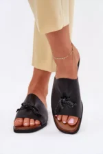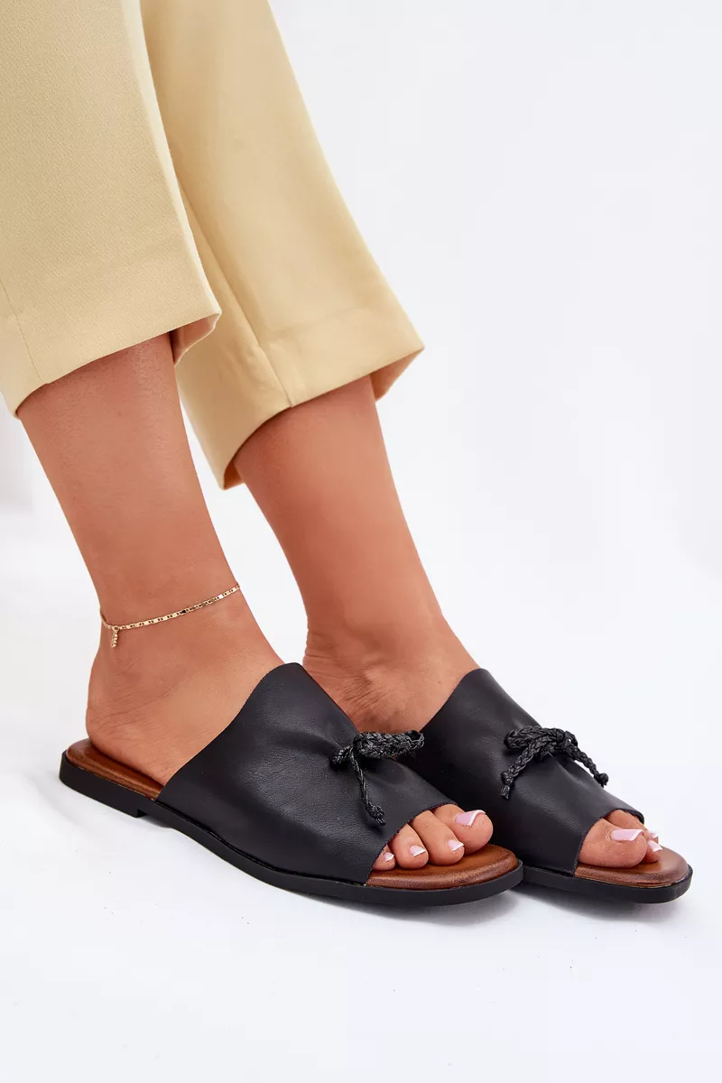 Šie sieviešu sandales, kas izgatavotas no videi draudzīgas ādas ar plakanu papēdi, ir eleganta izvēle siltajām dienām. Šis modelis izceļas ar smalku dekoratīvu mezglu, kas piešķir tam unikālu raksturu. To klasiskā forma nodrošina, ka tie labi sader ar kleitām un biksēm, radot stilīgu un ērtu izskatu. Izvēloties izmēru, lūdzu, izmantojiet izmēru tabulu.
