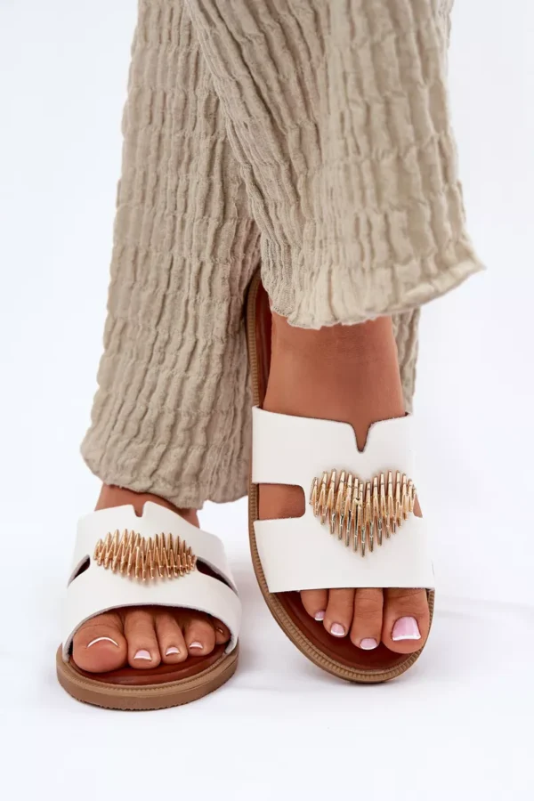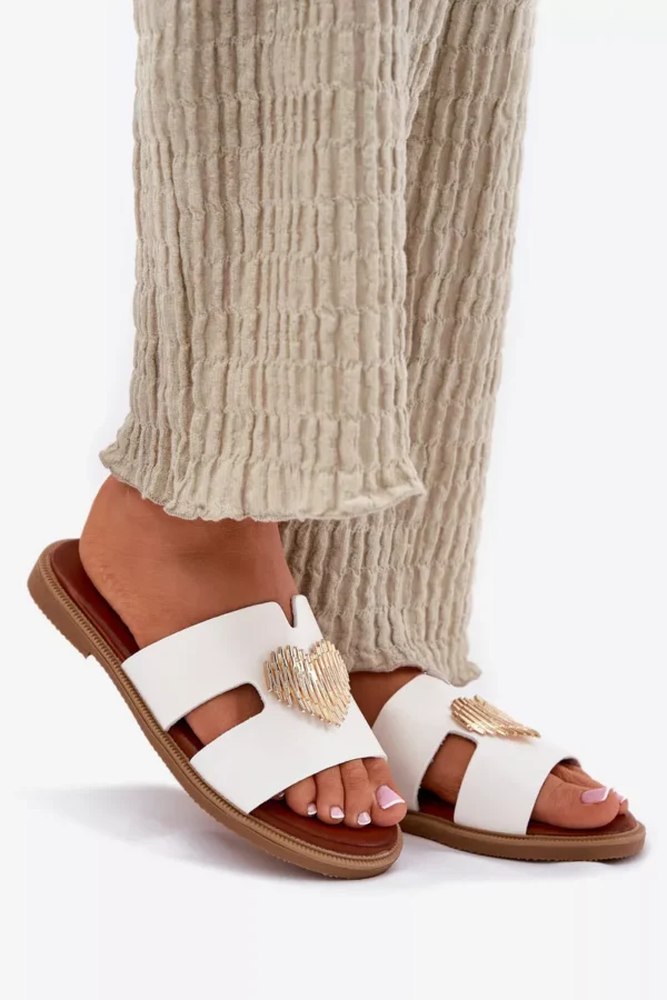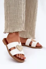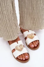 Šie sieviešu čības, kas izgatavotas no videi draudzīgas ādas, ir ideāla izvēle siltajām dienām. Ar plakanu papēdi tās nodrošina komfortu un vieglumu visas dienas garumā. Priekšpusē ir pievilcīgs sirds formas rotājums, kas piešķir tām smalku šarmu. Mīkstais zoles materiāls garantē komfortu, padarot šos čības par lielisku izvēli vasaras stilam, apvienojot eleganci ar funkcionalitāti. Ideāli piemēroti ikdienas pastaigām saulainās dienās! Izvēloties izmēru, lūdzu, skatieties izmēru tabulu.