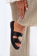 Šie sieviešu čības, kas izgatavotas no videi draudzīgas ādas, ir ideāla izvēle siltajām dienām. Ar plakanu papēdi tās nodrošina komfortu un vieglumu visas dienas garumā. Priekšpusē ir pievilcīgs sirds formas rotājums, kas piešķir tām smalku šarmu. Mīkstais zoles materiāls garantē komfortu, padarot šos čības par lielisku izvēli vasaras stilam, apvienojot eleganci ar funkcionalitāti. Ideāli piemēroti ikdienas pastaigām saulainās dienās! Izvēloties izmēru, lūdzu, skatieties izmēru tabulu.
