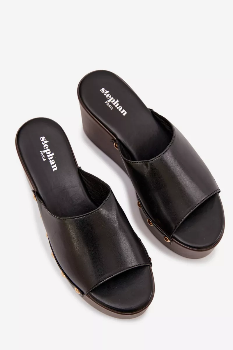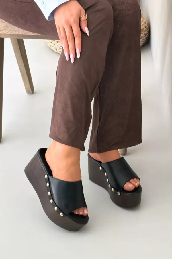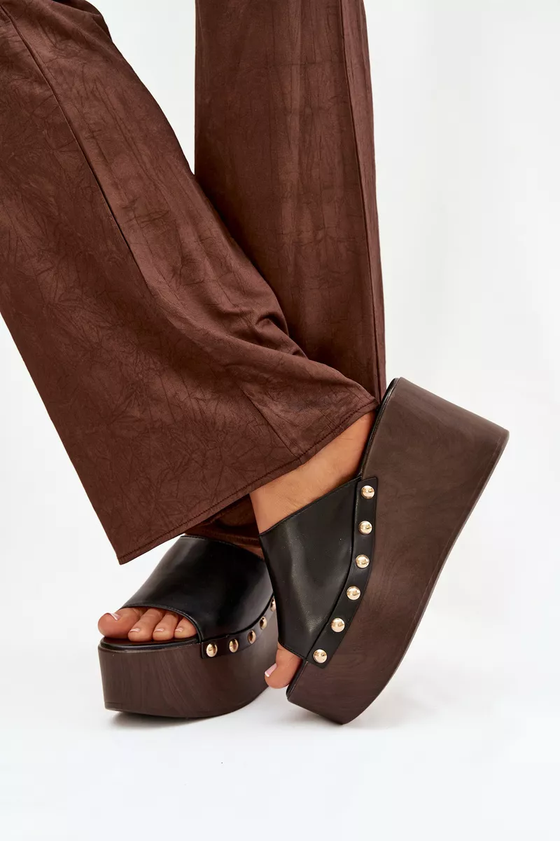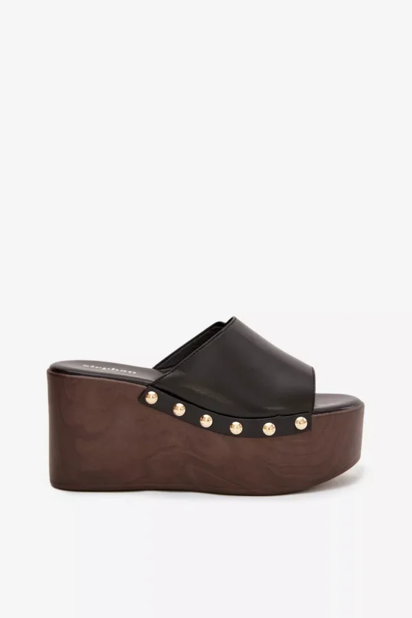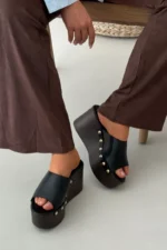 Stilīgas sieviešu čības no videi draudzīgas ādas ir ērta un iespaidīga izvēle ikdienas valkāšanai. Papēdis, apvienots ar platformu, nodrošina stabilitāti un komfortu, delikāti uzsverot siluetu. Zelta kniedes sānos piešķir modes pieskārienu kopējam izskatam. Šis modelis ir ideāli piemērots vasaras stila apģērbiem – kleitām, biksēm vai svārkiem. Tā ir ideāla izvēle sievietēm, kas novērtē komfortu apvienojumā ar izteiksmīgiem, stilīgiem detaļām. Izvēloties izmēru, lūdzu, izmantojiet izmēru tabulu.