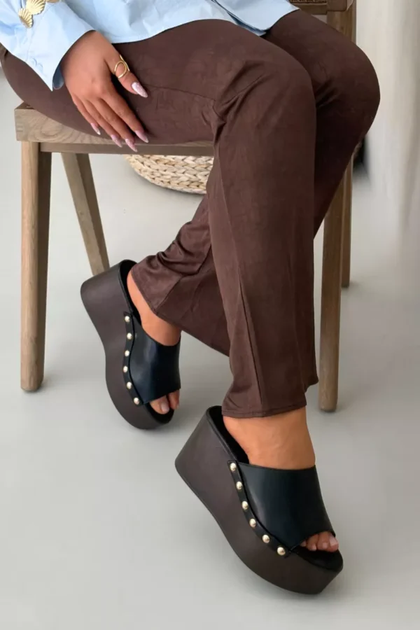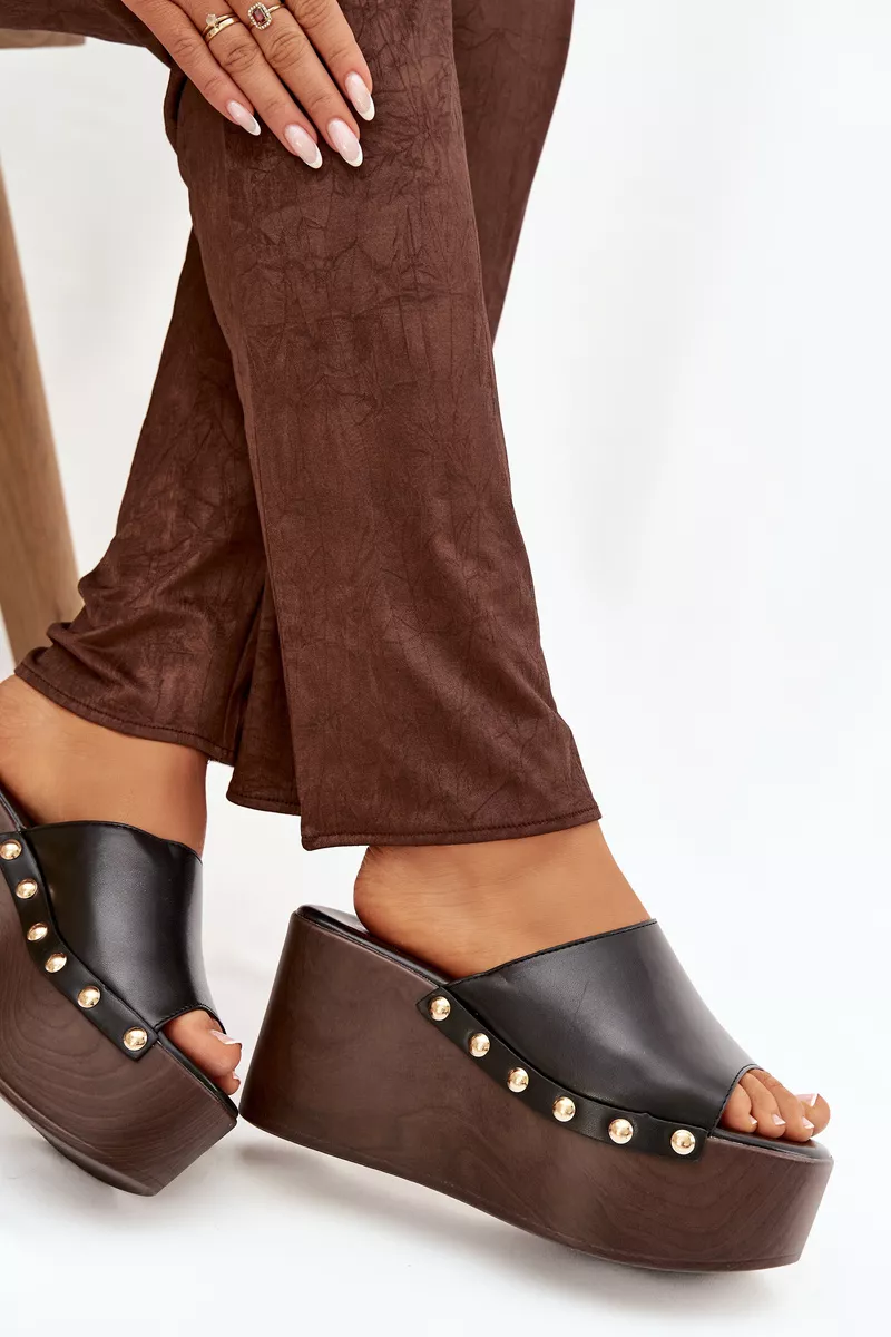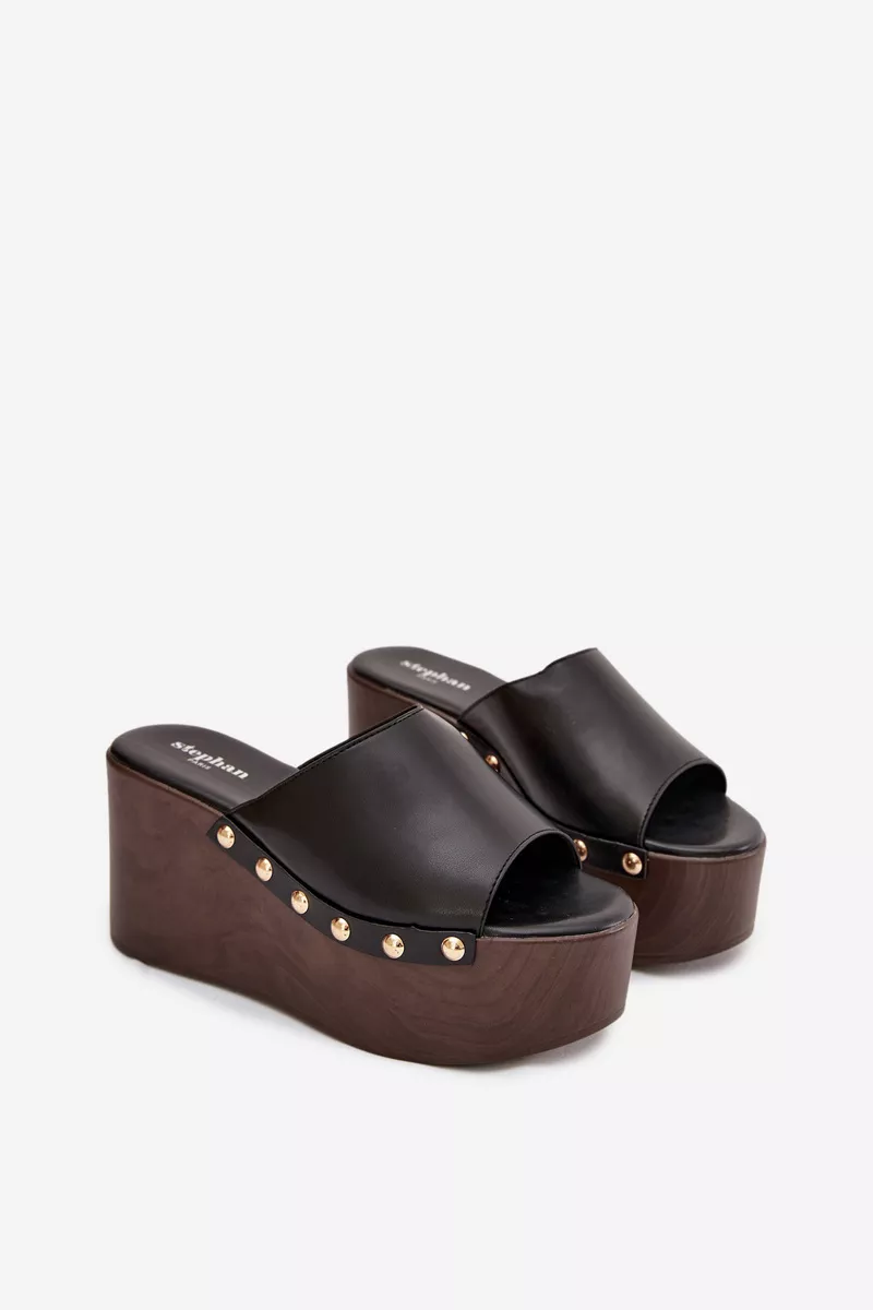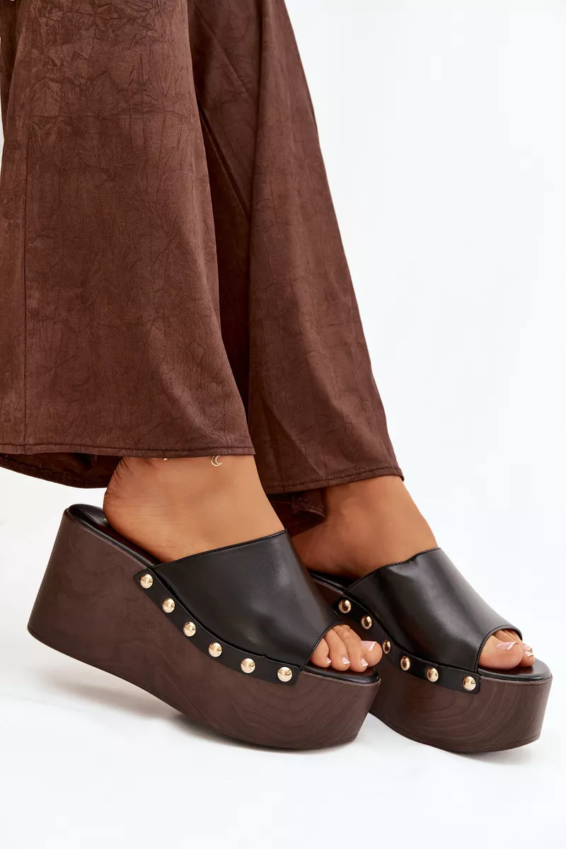 Stilīgas sieviešu čības no videi draudzīgas ādas ir ērta un iespaidīga izvēle ikdienas valkāšanai. Papēdis, apvienots ar platformu, nodrošina stabilitāti un komfortu, delikāti uzsverot siluetu. Zelta kniedes sānos piešķir modes pieskārienu kopējam izskatam. Šis modelis ir ideāli piemērots vasaras stila apģērbiem – kleitām, biksēm vai svārkiem. Tā ir ideāla izvēle sievietēm, kas novērtē komfortu apvienojumā ar izteiksmīgiem, stilīgiem detaļām. Izvēloties izmēru, lūdzu, izmantojiet izmēru tabulu.