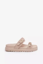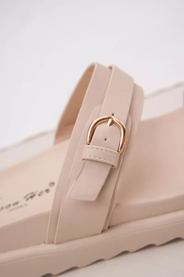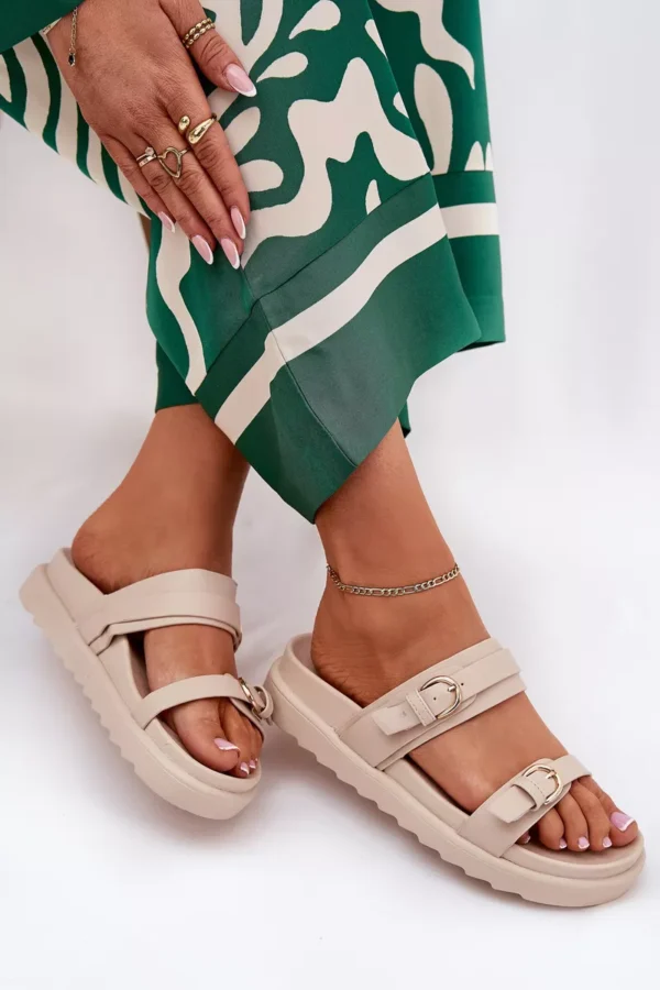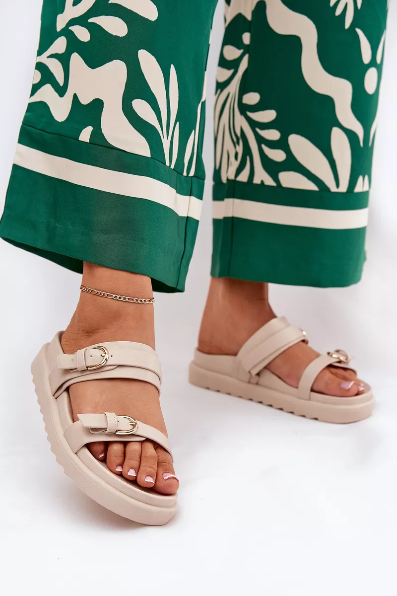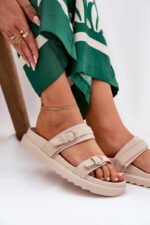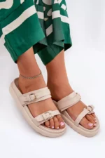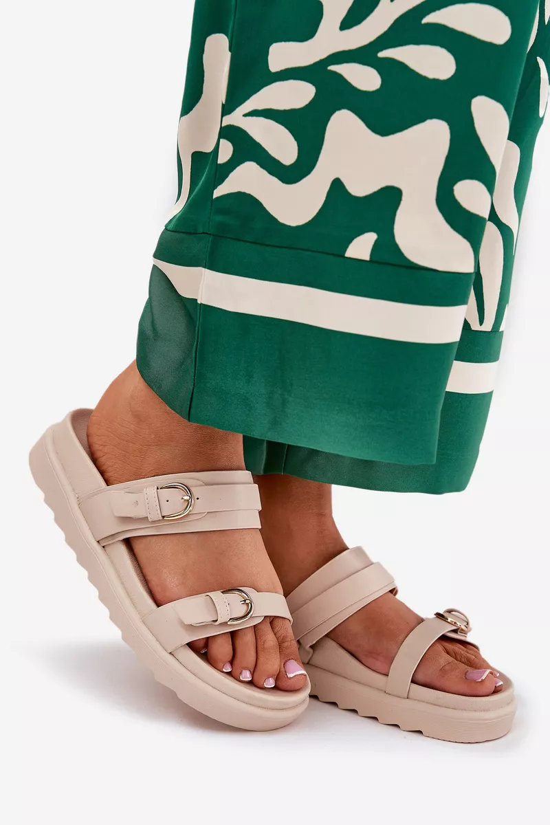 Stilīgas sieviešu platforma sandales, kas apvieno komfortu ar modernu izskatu. Priekšpusē ir divas siksnas ar sprādzēm, kas piešķir raksturu un diskrēti piesaista uzmanību. Platforma nodrošina pārliecību un stabilitāti visas dienas garumā. Ideāli piemērotas ikdienas valkāšanai, tās labi sader ar kleitām un biksēm, veidojot daudzpusīgu vasaras izskatu. Izvēloties izmēru, lūdzu, izmantojiet izmēru tabulu.